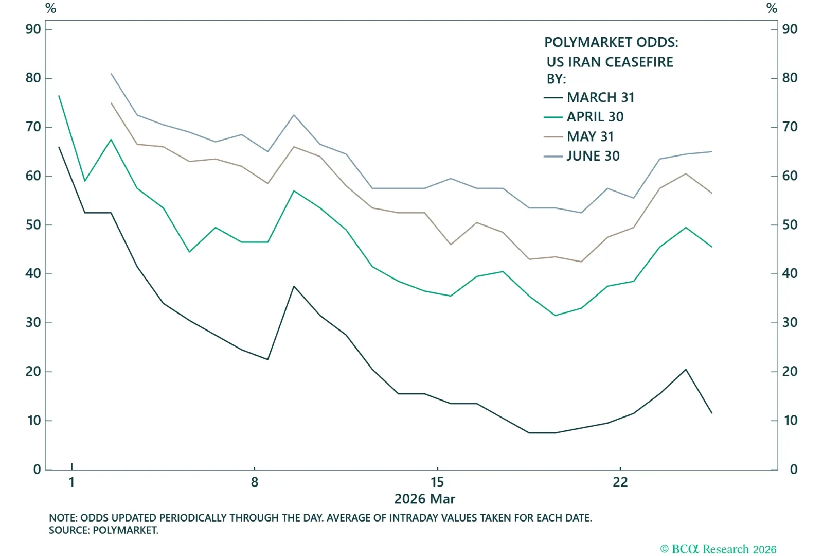 US appetite for war is likely fading with Iranian resilience, the threat of higher prices and the upcoming US Midterms.