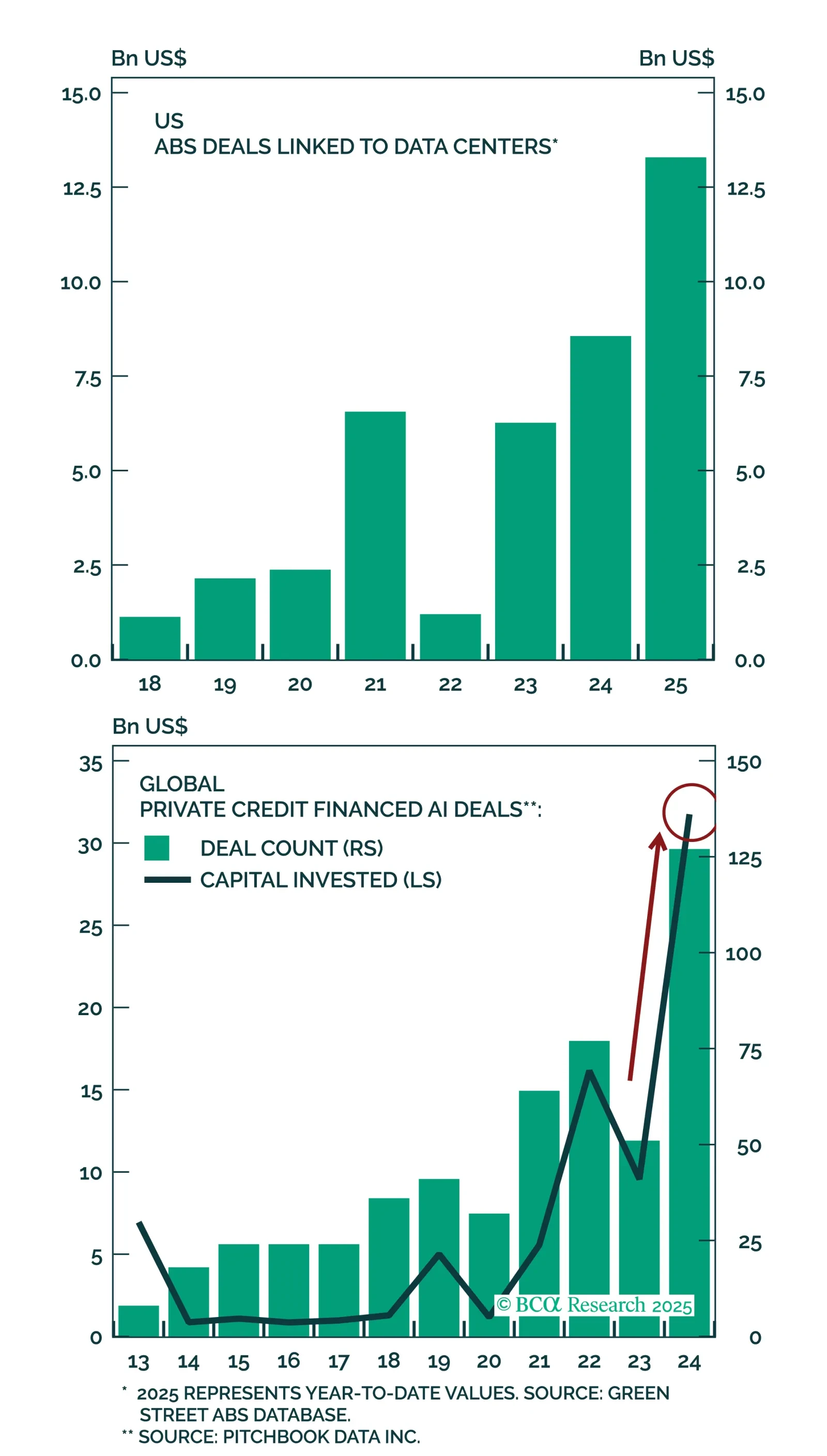 This has started to change of late (Chart 14). In October, Meta announced a $27 billion data center financing deal to be housed in an off-balance-sheet SPV. Oracle tapped the bond market for $18 billion after recently securing a $38 billion loan. The company now holds nearly $96 billion in debt. Several power generation companies have also announced significant debt-financed expansion plans.