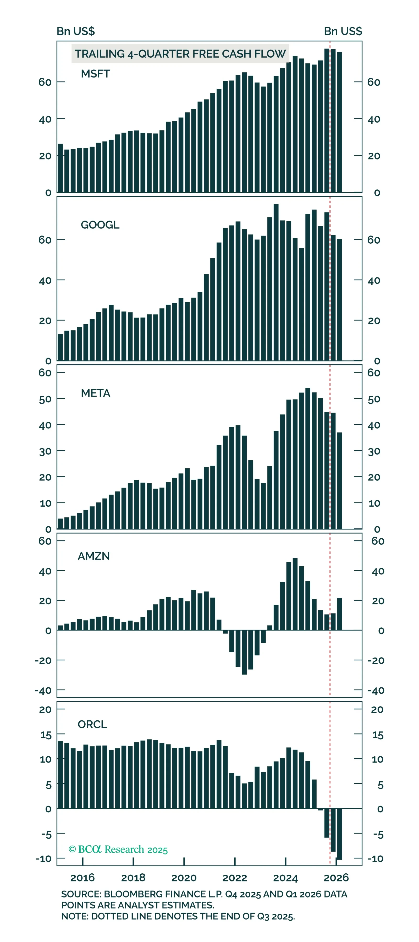 This suggests that investors should not wait for evidence that AI capex has rolled over. By the time that evidence is apparent, AI stocks will have fallen considerably.