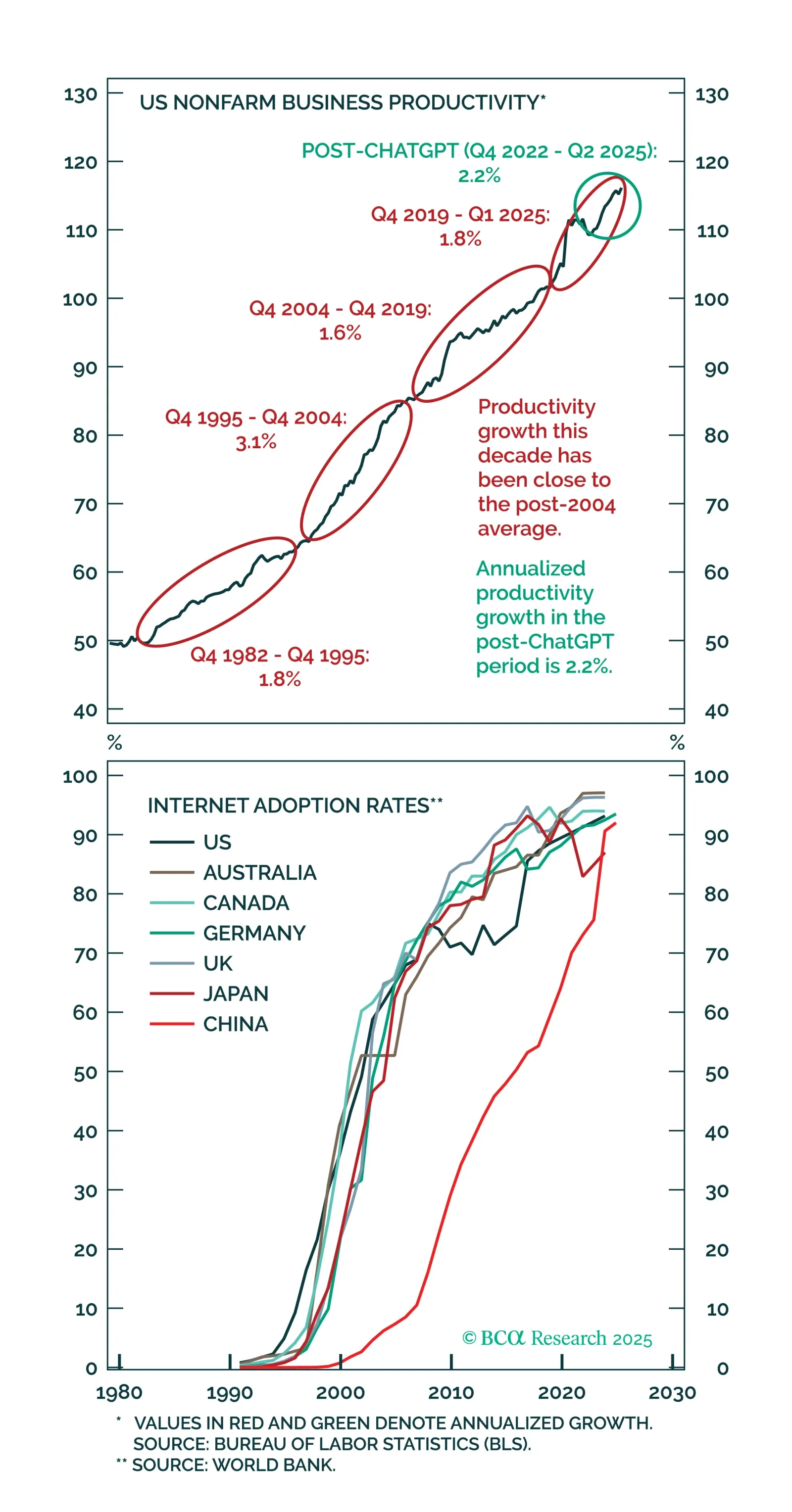 Although AI is now vying for the crown, no boom was as spectacular as the internet boom of the late 1990s. Like most booms, the internet one was based on real innovation – innovation that raised productivity and changed the way people lived and worked (Chart 5). However, as often occurs during booms, investment spending got ahead of itself, setting the stage for a bust.