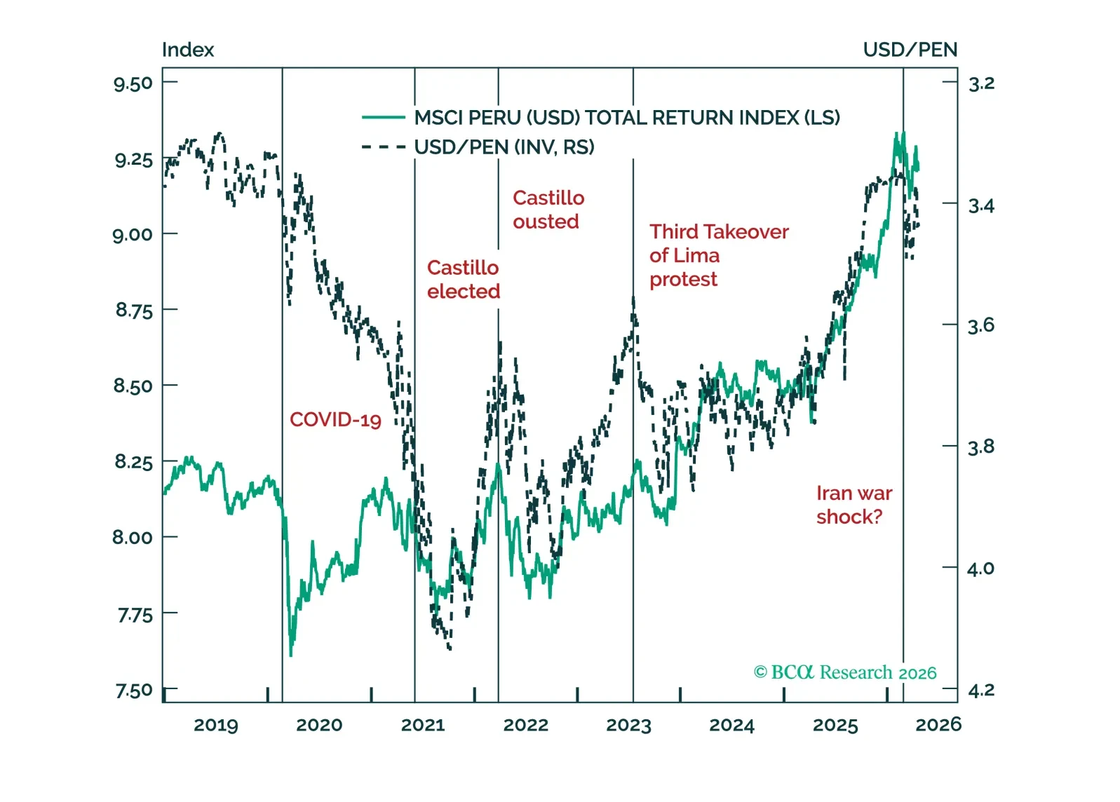 Peru is well established to elect a pro-market government in the June 7 run-off, with institutional constraints limiting left-tail policy risks. We will go long Peruvian assets when Hormuz volatility subsides.