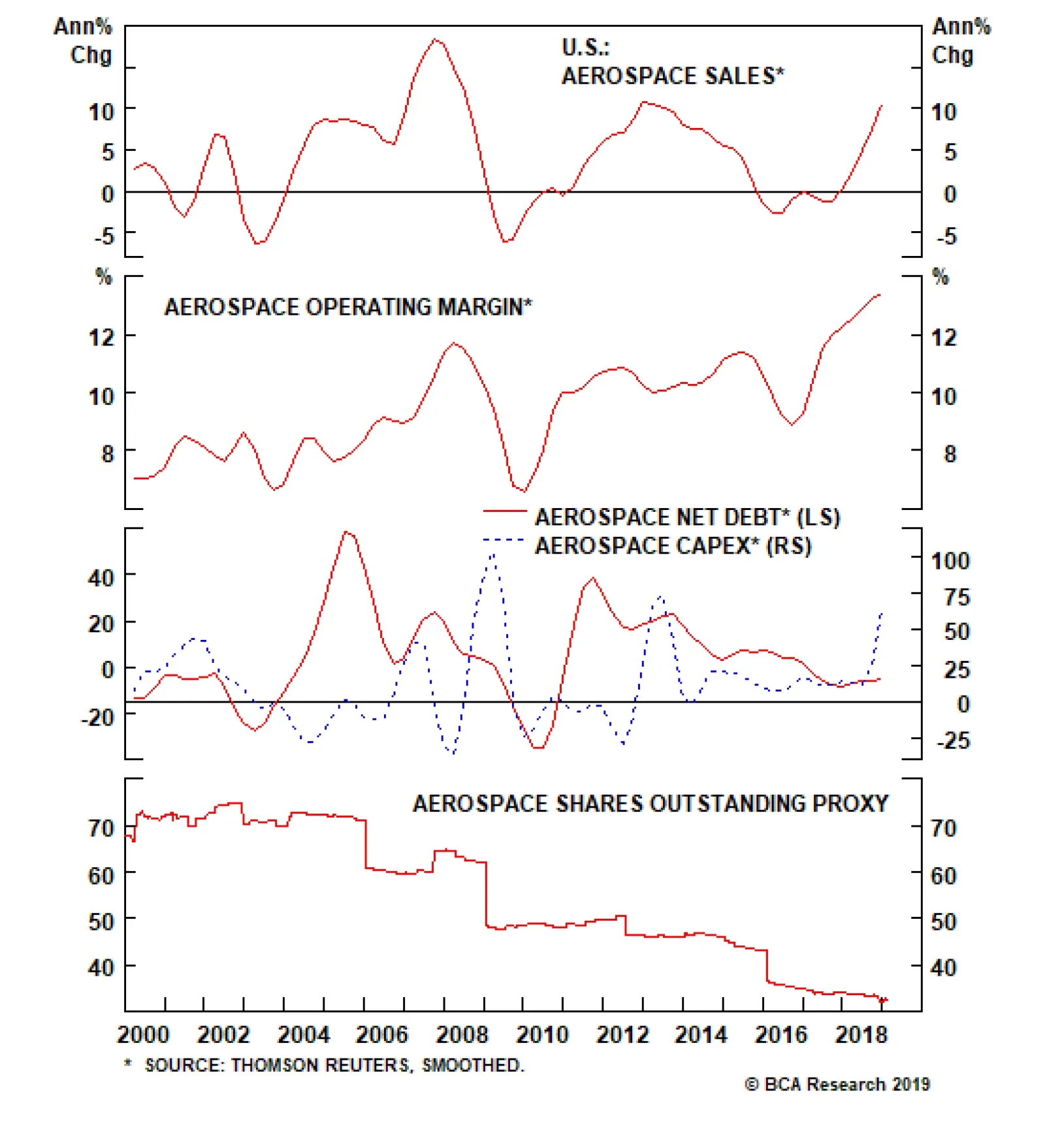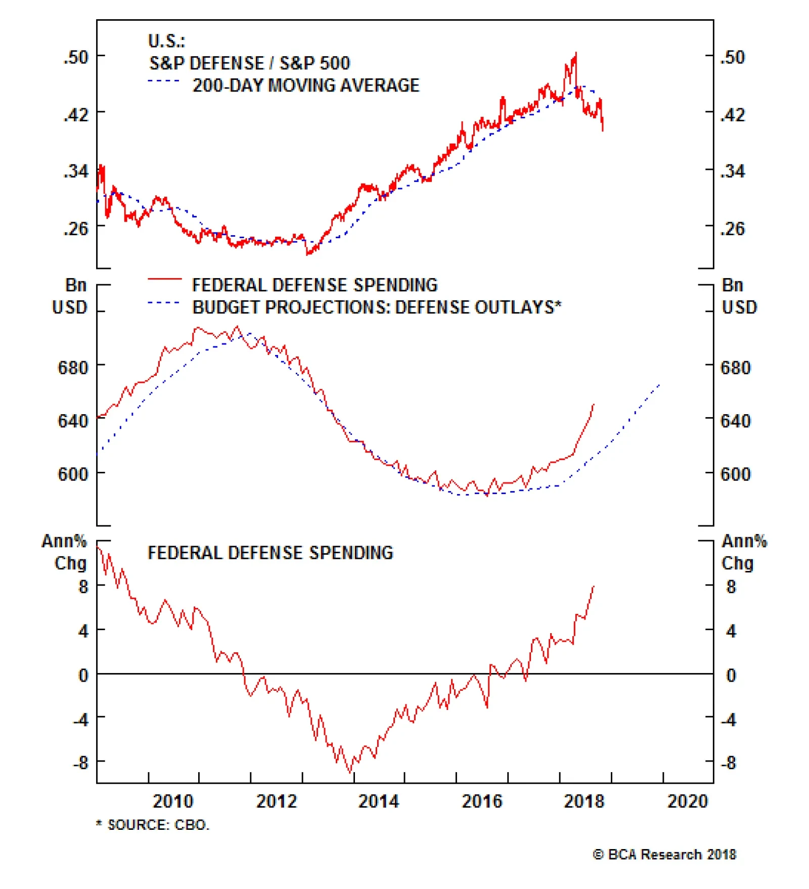 Overweight Though the pure-play BCA defense index has retreated somewhat from the mid-2018 highs, our thesis remains solidly on the offensive. As a reminder, we have been overweight the pure-play BCA defense index since late-…