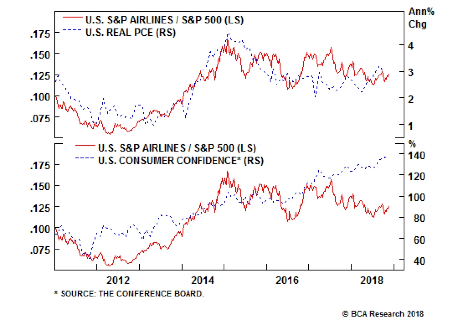 When our U.S. Equity Strategy team moved to an overweight recommendation on the S&P airlines index last year, they noted three pillars supporting the onset of an earnings outperformance: a drubbing in oil prices significantly…