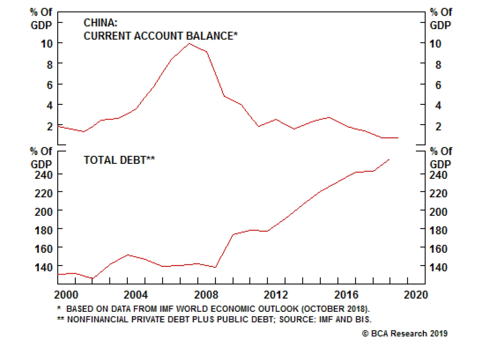 Unfortunately for China, as its economy has grown in relation to the rest of the world, running massive trade surpluses has become more difficult. This is especially true today, when the country is being singled out by the Trump administration and much of the international community for alleged unfair trade practices. As China’s ability to churn out large current account surpluses declined, the government moved to Plan B: propping up growth by recycling the country’s copious savings into fixed-asset investment (see Box 1). This process saw households park their savings in banks and other financial institutions which, in turn, lent the money out to companies and local governments in order to finance various investment projects. Not surprisingly, debt levels exploded (Chart 7). Chart 7China: From Exporting Savings To Investing Domestically (And Building Up Debt)