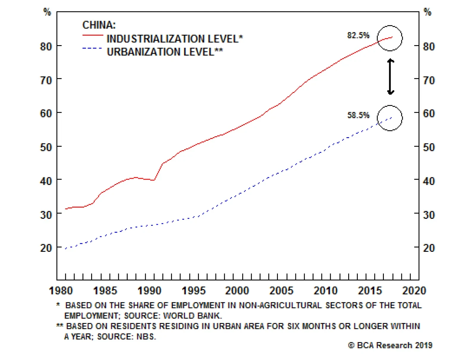 China’s rural population has declined by 33% from its peak of about 860 million in 1995 to 577 million in 2017 (see chart). All else equal, the lower rural population base alone will result in smaller rural-to-city migration compared to the previous two…