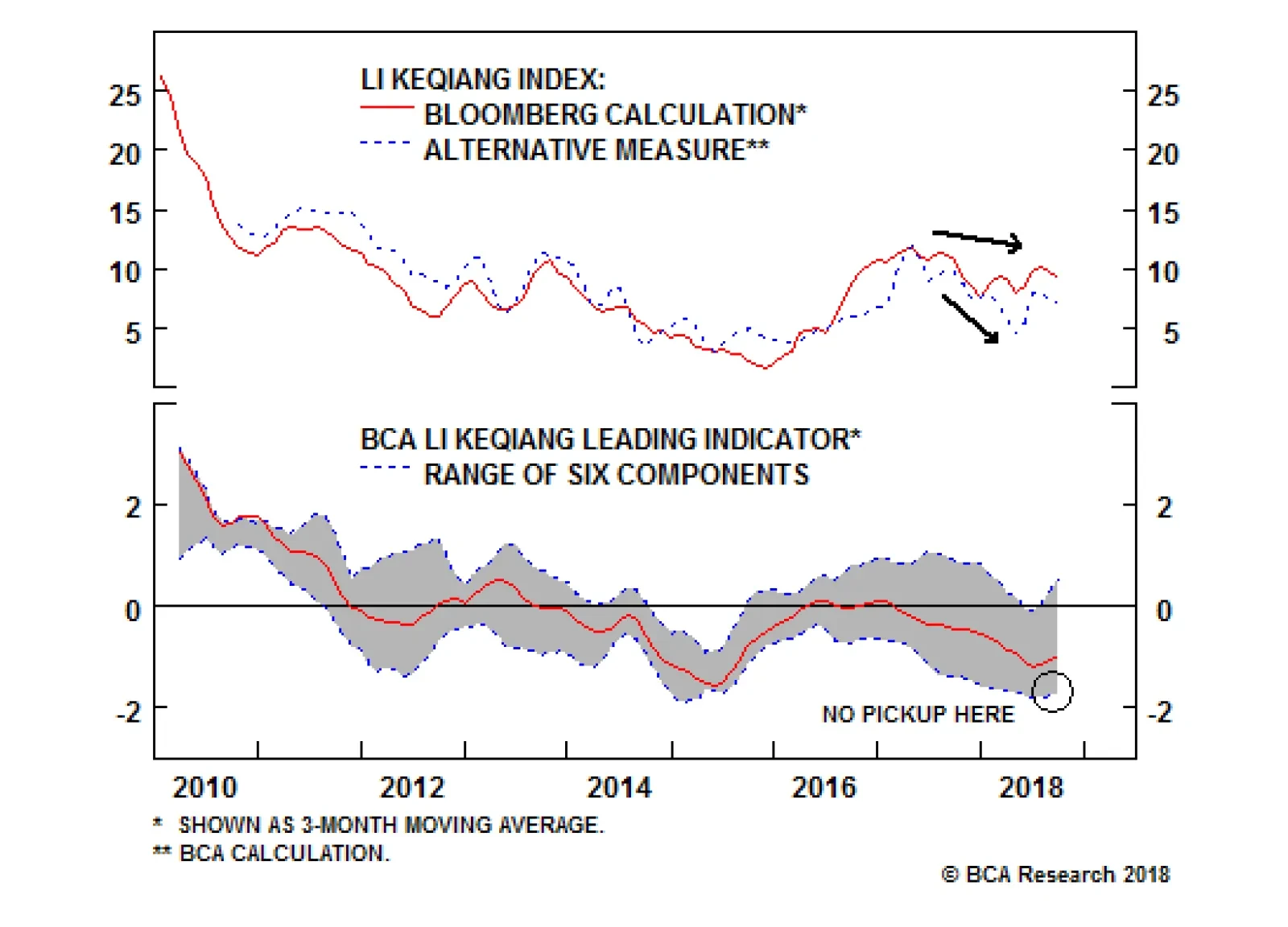 Our BCA Li Keqiang leading indicator has risen somewhat from its June low, driven by the two monetary conditions indexes (MCIs) included in the indicator. Both of these MCIs have, in turn, been driven by the substantial weakness in the RMB over the past four months. This sharp improvement has not been matched by the other components of the indicator: Chart 2 illustrates that the low end of the component range remains quite weak, in contrast to mid-2015 when both the high and low ends of the range were in a clear uptrend. Chart 2A Narrow Pickup In Our LKI Leading Indicator