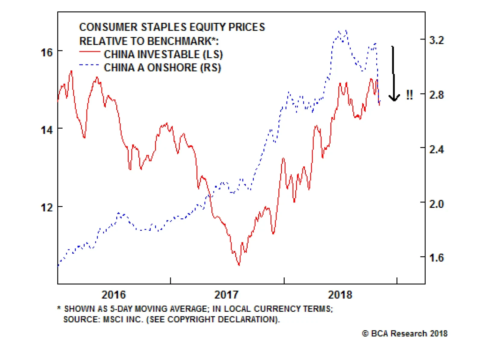 Within Chinese investable stocks, low-beta equity sectors have in general continued to outperform over the past month. Our long MSC China low-beta sectors / short MSCI China trade is up 10% since initiation on June 27, and we expect further gains in the near-term. One exception to this trend is the relative performance of domestic and investable consumer staples stocks, which have recently underperformed their respective broad markets (Chart 4). The selloff has been sharp in the case of the domestic market, and has been in response to heightened fears that household consumption is weakening, a sector of the economy that heretofore had been reliably strong. In response to these developments, please note that BCA's China Investment Strategy service will be publishing a Special Report outlook detailing the outlook for the Chinese consumer next week. Chart 4Fears About Chinese Consumers Are Growing
