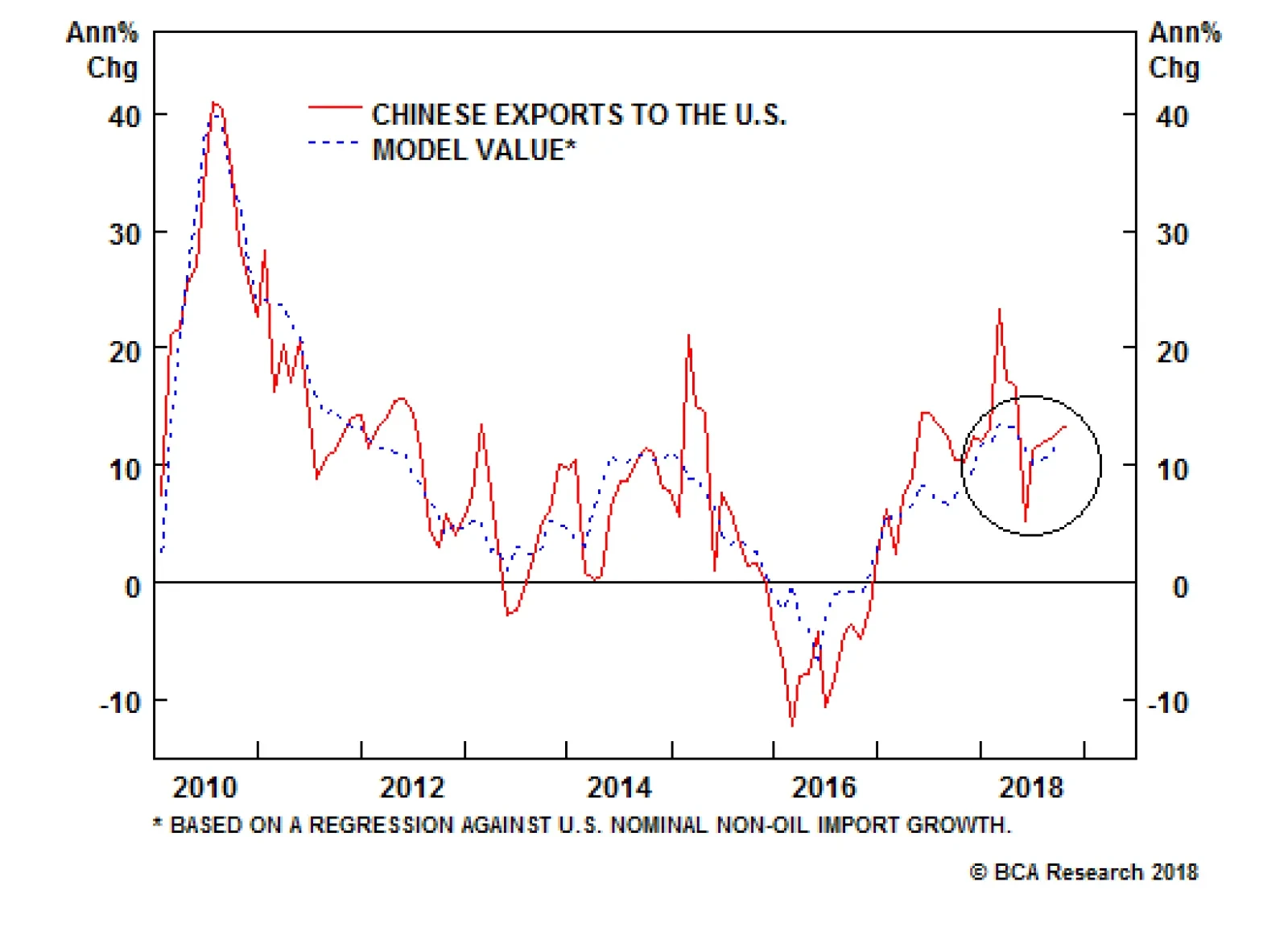 There is no direct reason to expect that the imposition of U.S. import tariffs will impact China’s exports to the world ex-U.S., but the robustness of exports to the U.S. strongly suggests that trade frontrunning continues and is masking the underlying trend.…