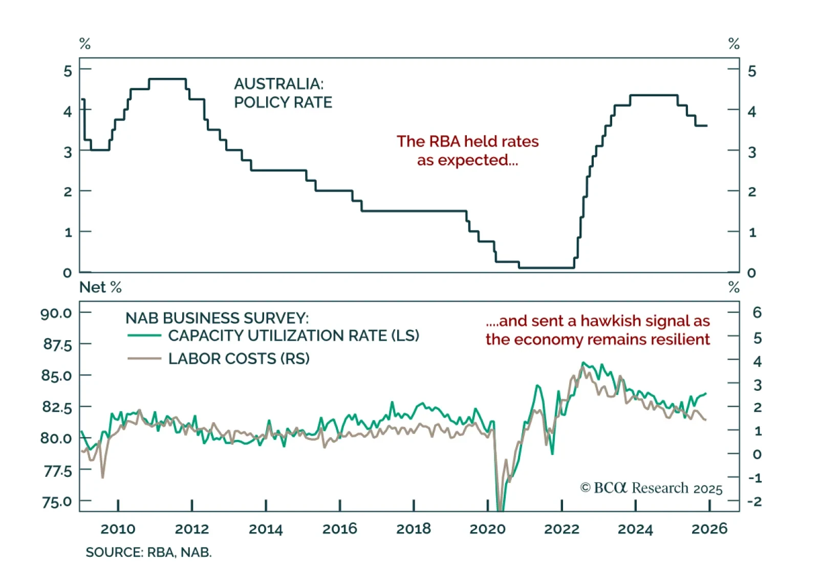 Australia’s October NAB Survey showed broad underlying strength, with business conditions and sales hitting multi-year highs. Business conditions rose to +9 from +8, the highest since March 2024, while confidence dipped slightly to +…