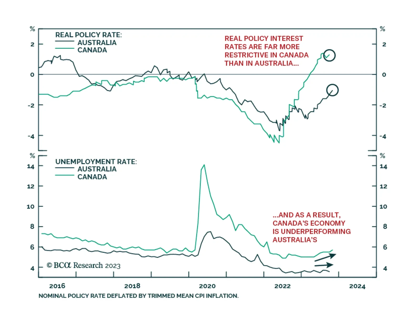The economies of Canada and Australia share many similarities. Both nations are major commodity exporters, but with overvalued housing markets and highly indebted consumers. Lately, however, a notable gap has appeared…