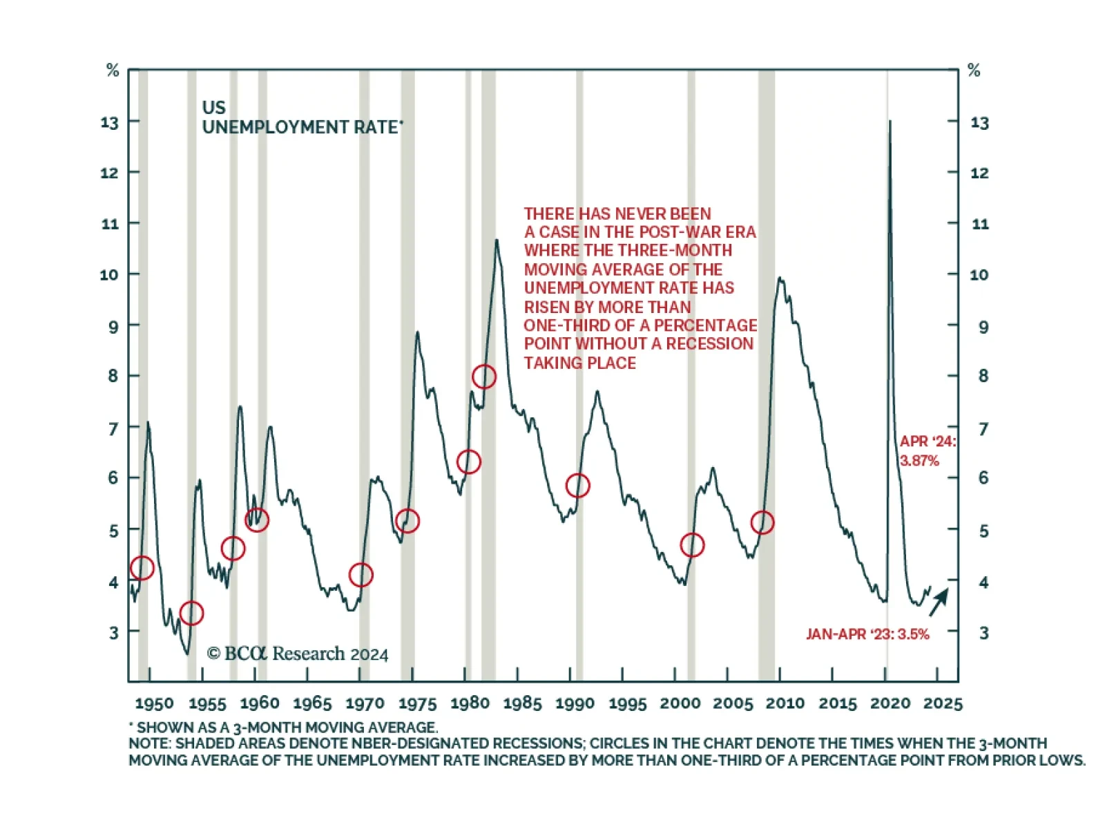 The 3-month moving average of the unemployment rate has been a reliable US recession indicator. Indeed, there has never been a case in the post-war era when it has increased by more than a third of a percentage point from its…