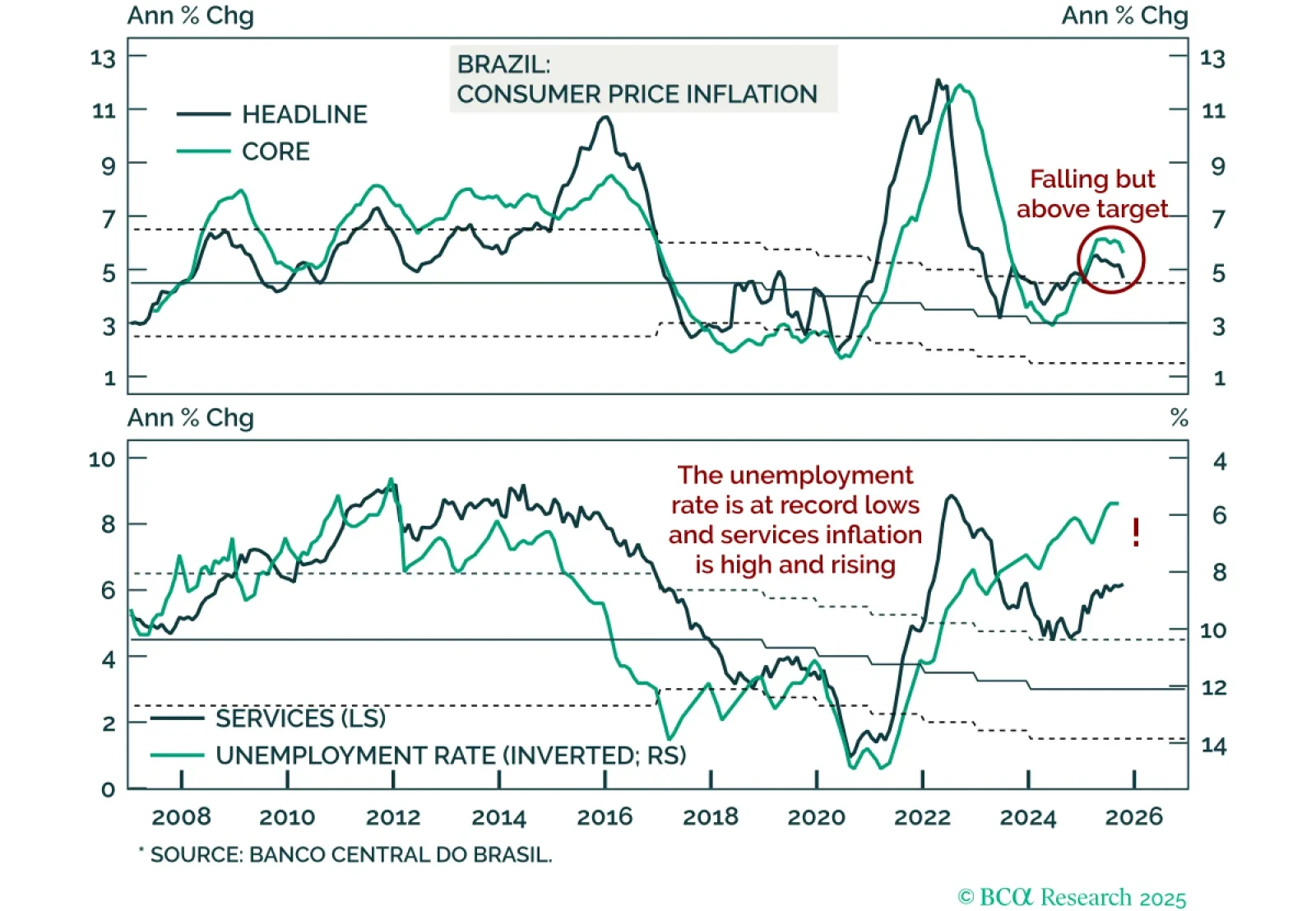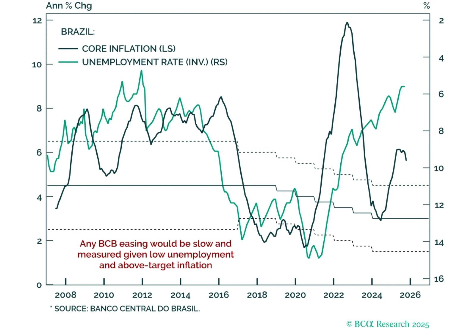 Our GeoMacro, Geopolitical, and EM strategists remain underweight Brazilian equities, local bonds, and sovereign credit over the next 6–12 months, as structural and macro constraints weigh on the outlook. Brazil has made some reform…