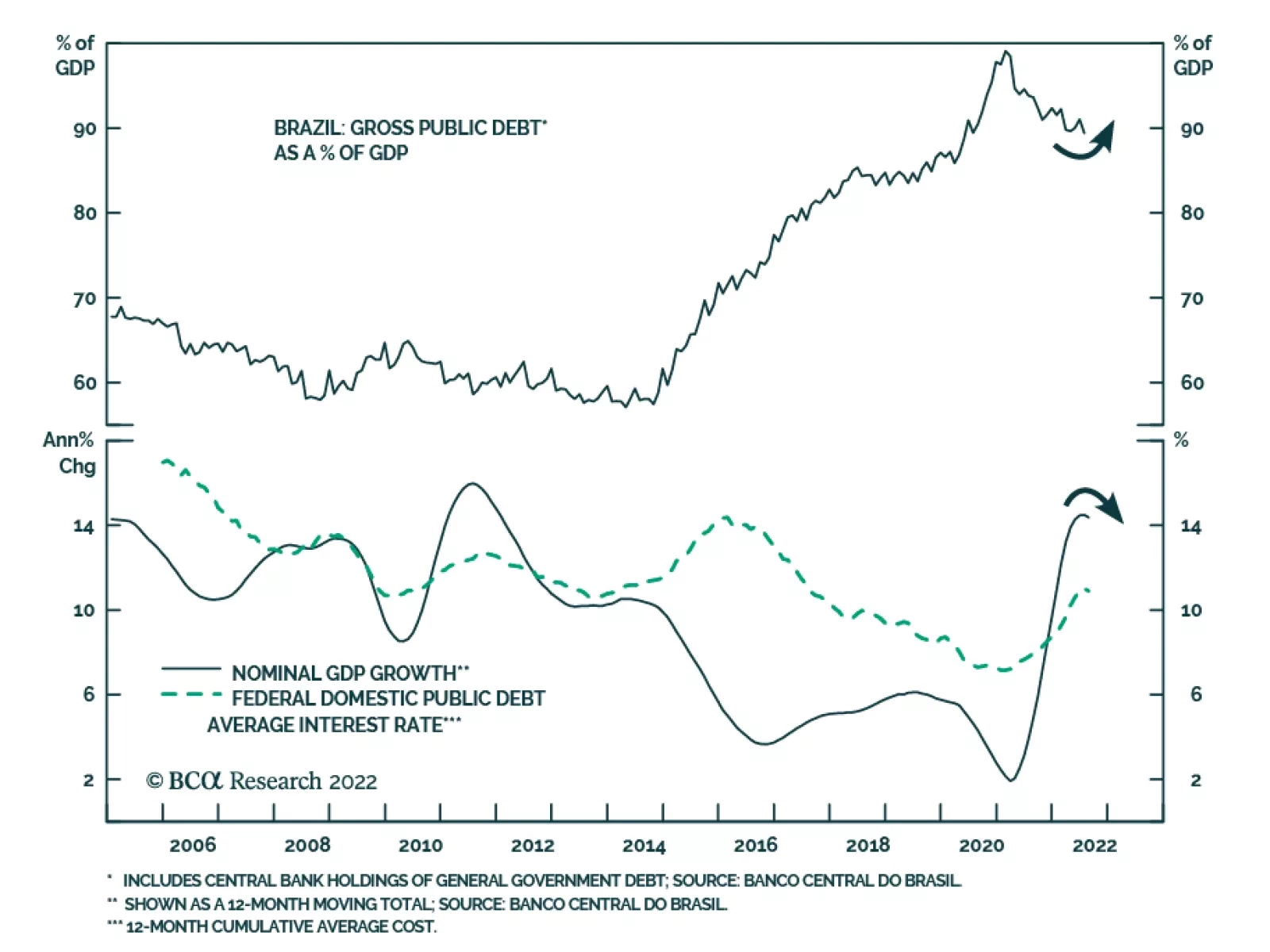 The only feasible way for Brazil to stabilize its public debt-to-GDP ratio is by having nominal GDP growth meaningfully above government borrowing costs. This requires large fiscal stimulus to boost nominal GDP and much lower…