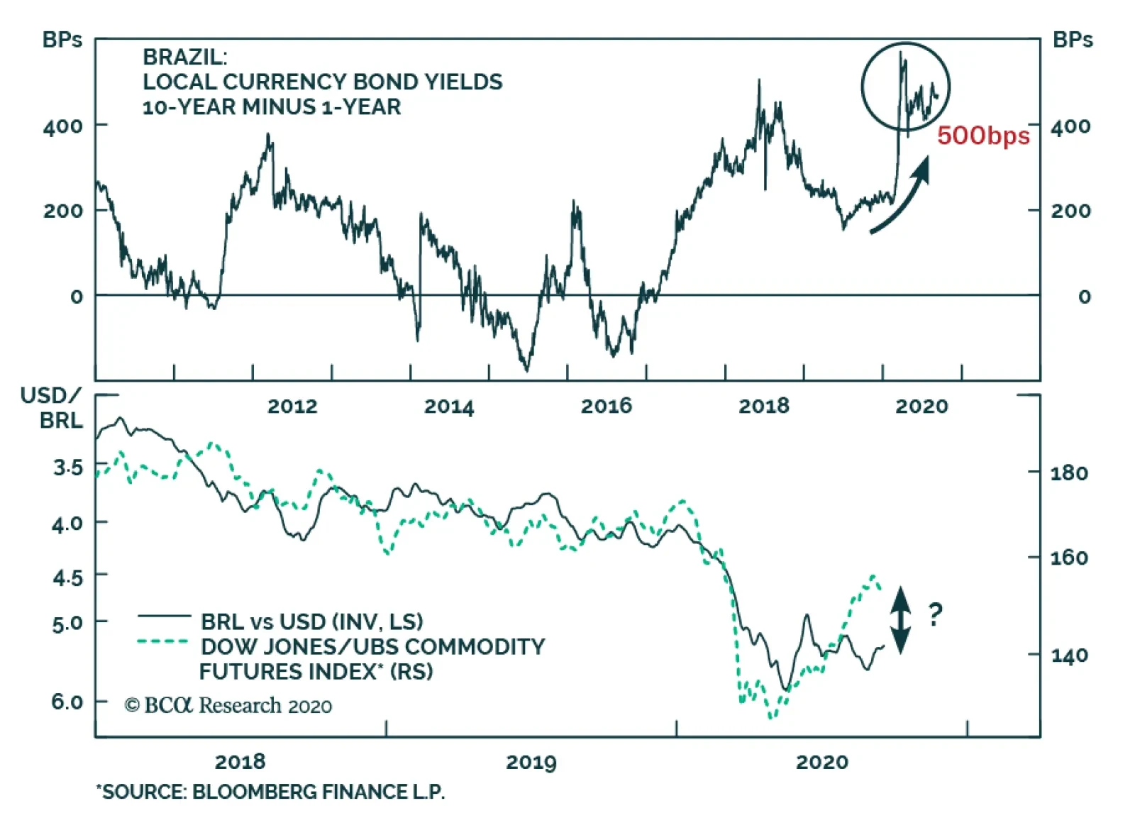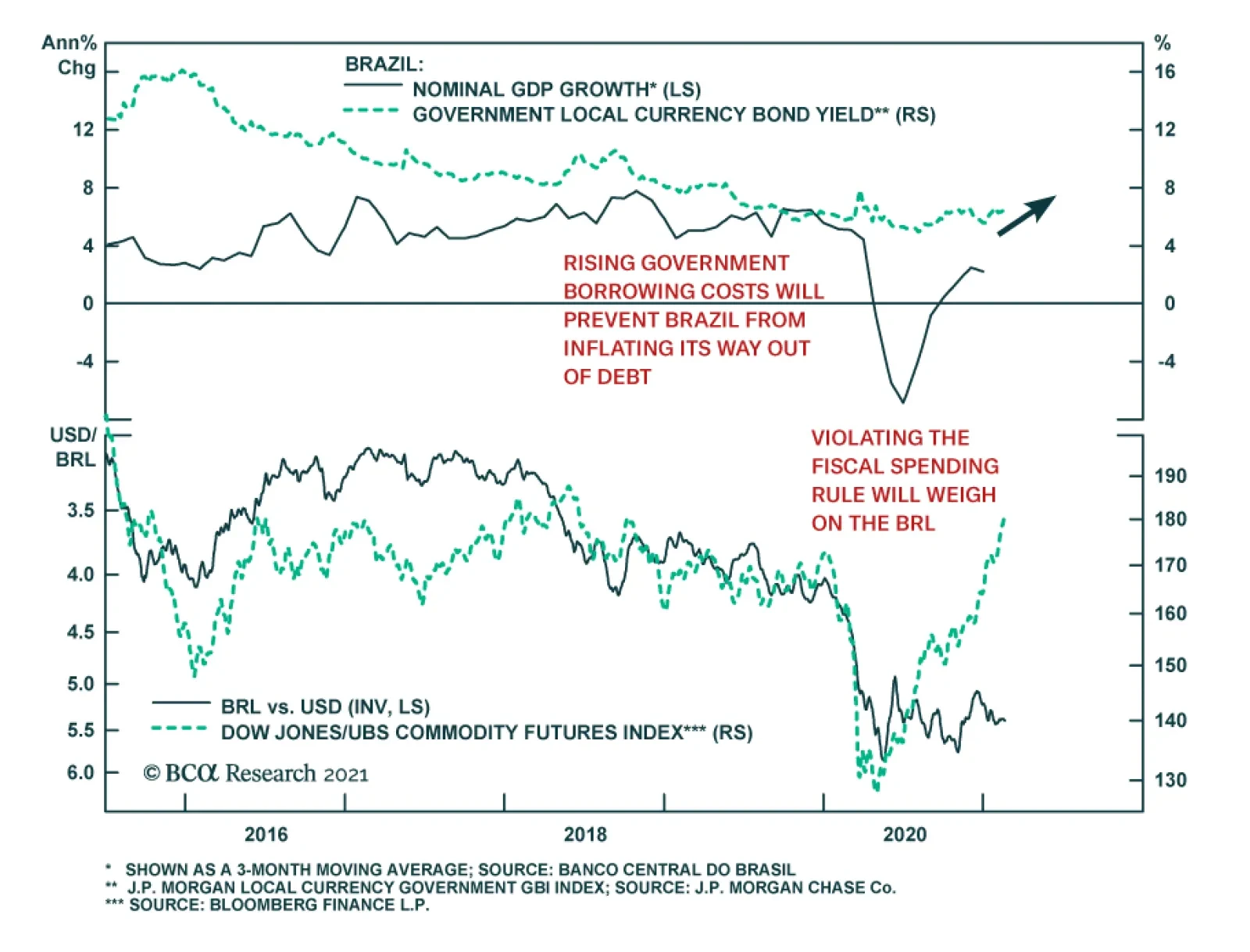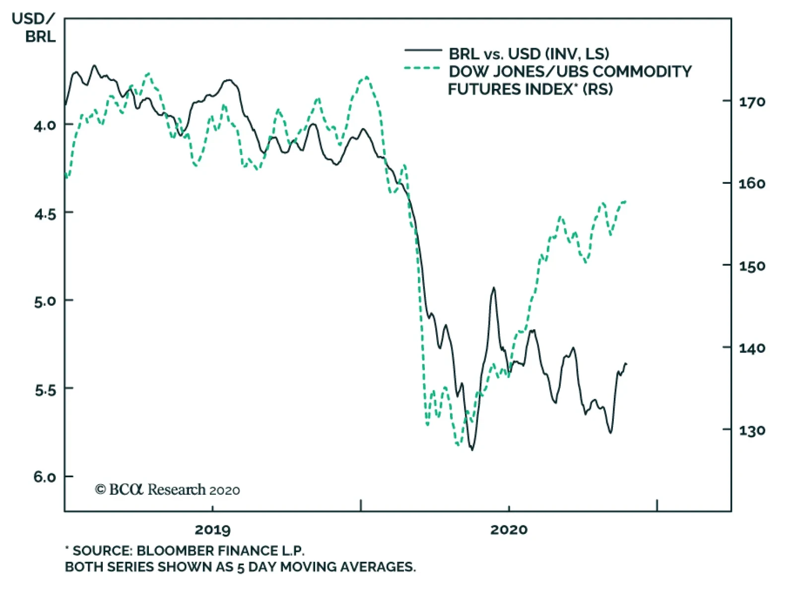 BCA Research’s Emerging Markets Strategy service remains negative on the BRL. Brazilian stocks will only become a clear buy after their risk premium reflects fiscal challenges better. Rising resource prices and the…