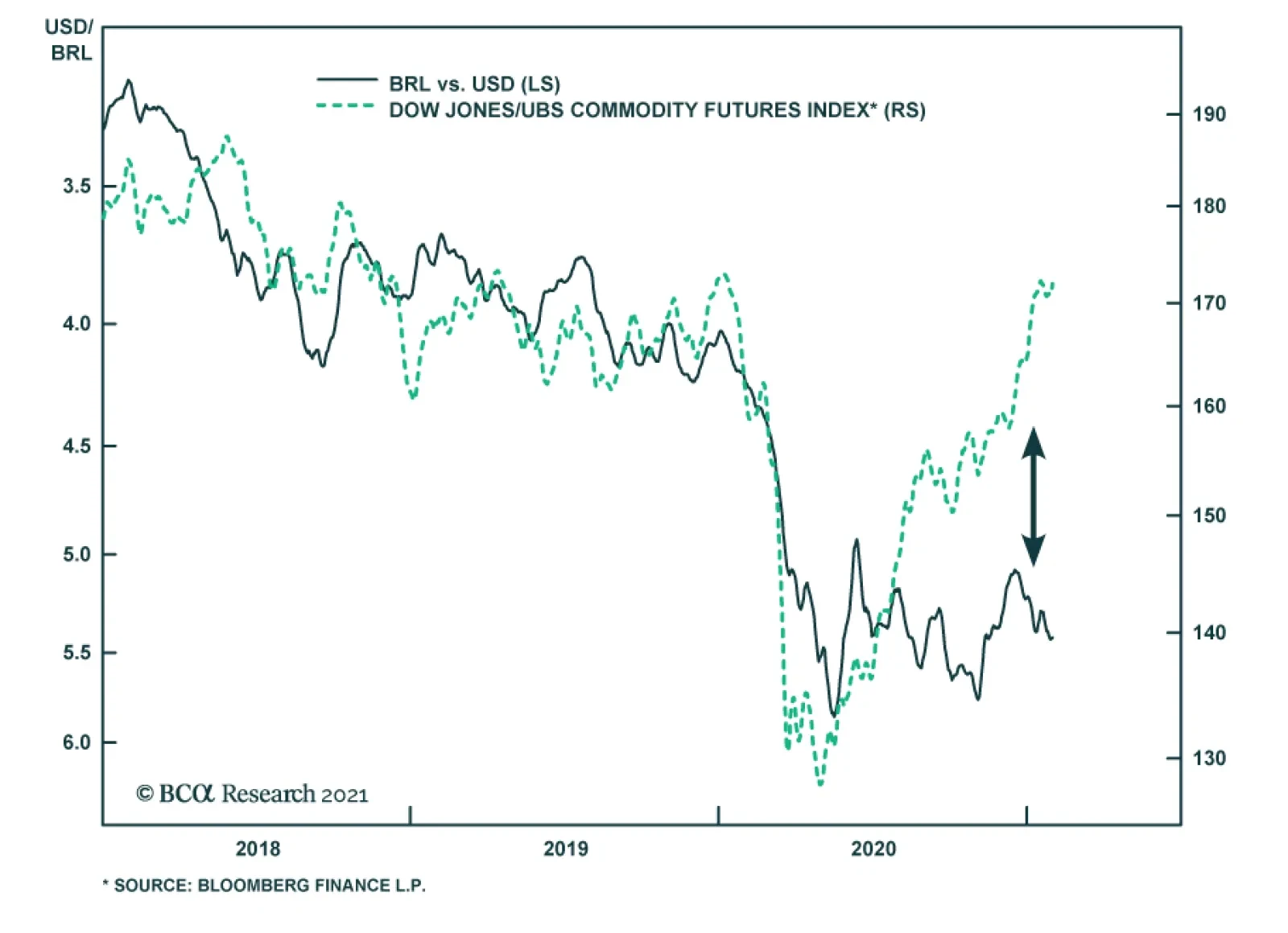 Chart I-1Brazilian Share Prices And Commodity Prices Move In Tandem A FOMO (fear-of-missing-out) mania has pushed equity prices higher around the world. Brazilian stocks, currency and credit markets, likewise, have been staging…