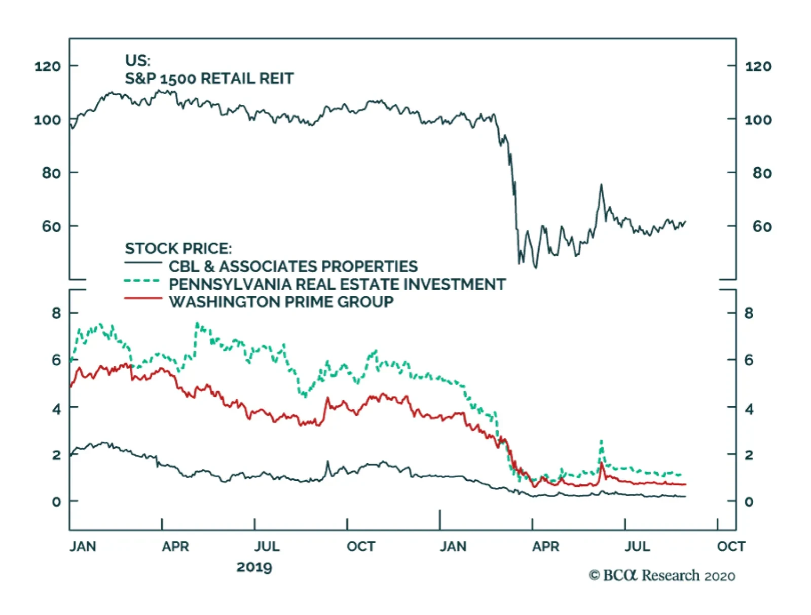 BCA Research’s US Investment Strategy service argues that despite investor worries, while several malls are likely to fail in in 2020 and 2021 their disappearances are not likely to hurt the economy. Retail properties…