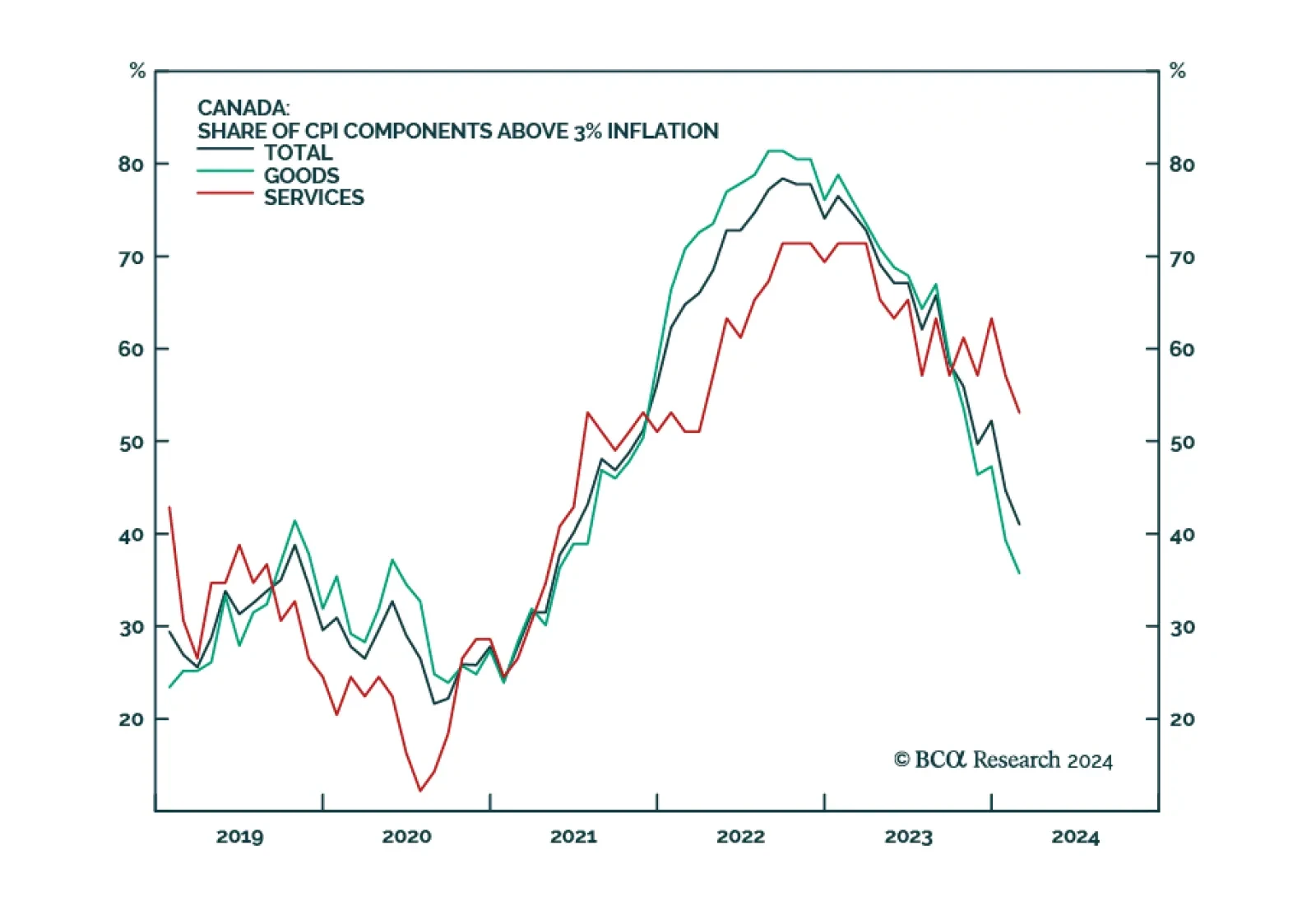 According to BCA Research’s Global Investment Strategy service, the BoC should have sufficient evidence of Canadian disinflation to cut rates this summer. The market is pricing in a similar amount of rate cuts for the BoC…