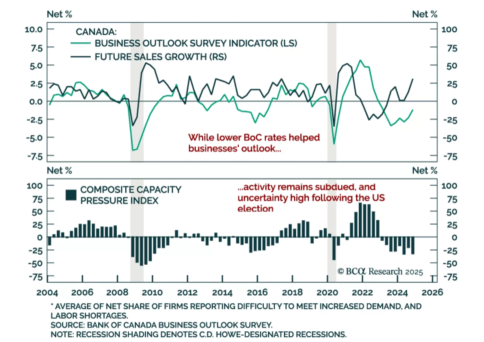 The Q4 2024 Bank of Canada’s Business Outlook Survey showed improving business optimism, with the overall index ticking up to -1.2, and a net 31% of surveyed businesses expecting higher sales, compared to 13% in Q3. Improved…