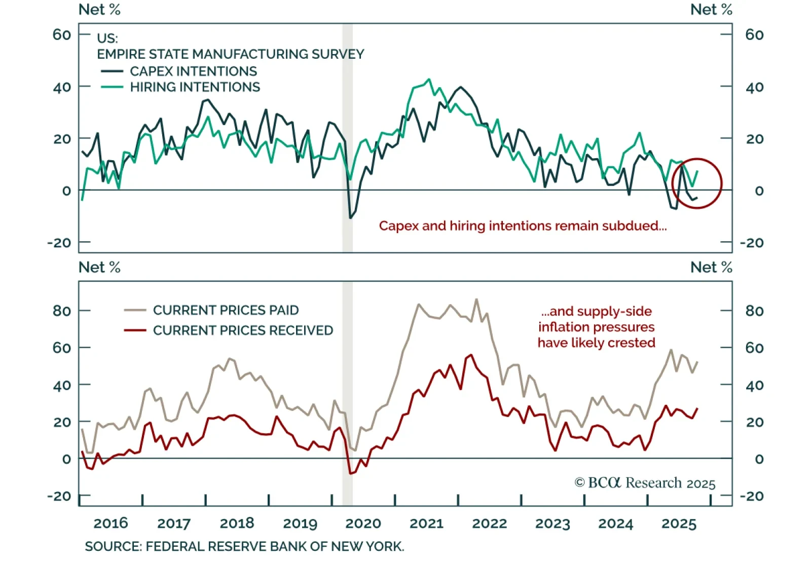 The October Empire Manufacturing survey beat estimates, but weak investment and hiring intentions temper its positive signal. The index rose to 10.7 from -8.7, indicating modest activity growth. New orders ticked up, and shipments…