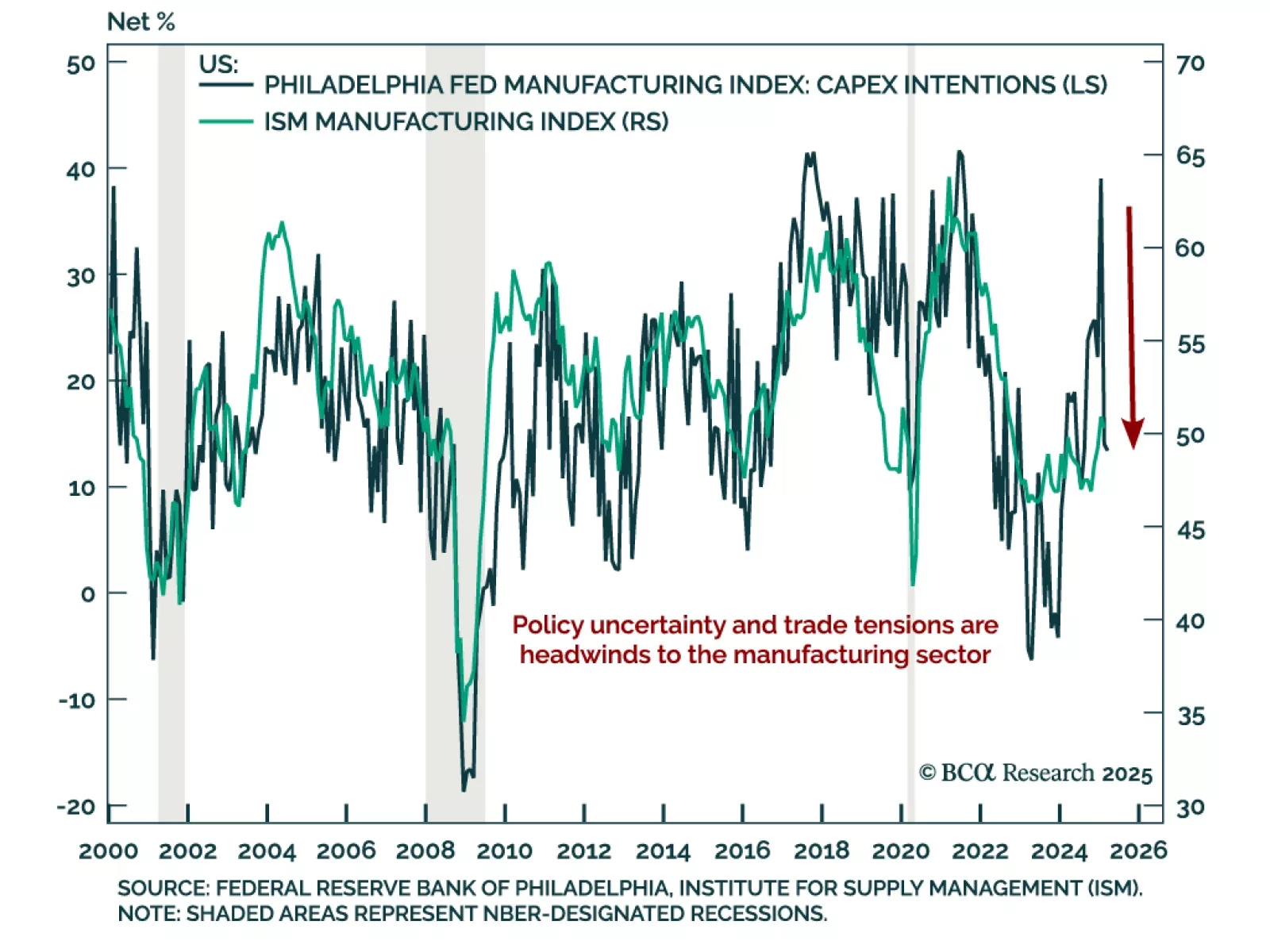A drop in core capex orders points to slowing business spending and softening global growth. Businesses appear to have front-loaded shipments ahead of potential tariffs while deferring new orders amid policy uncertainty. With hiring…