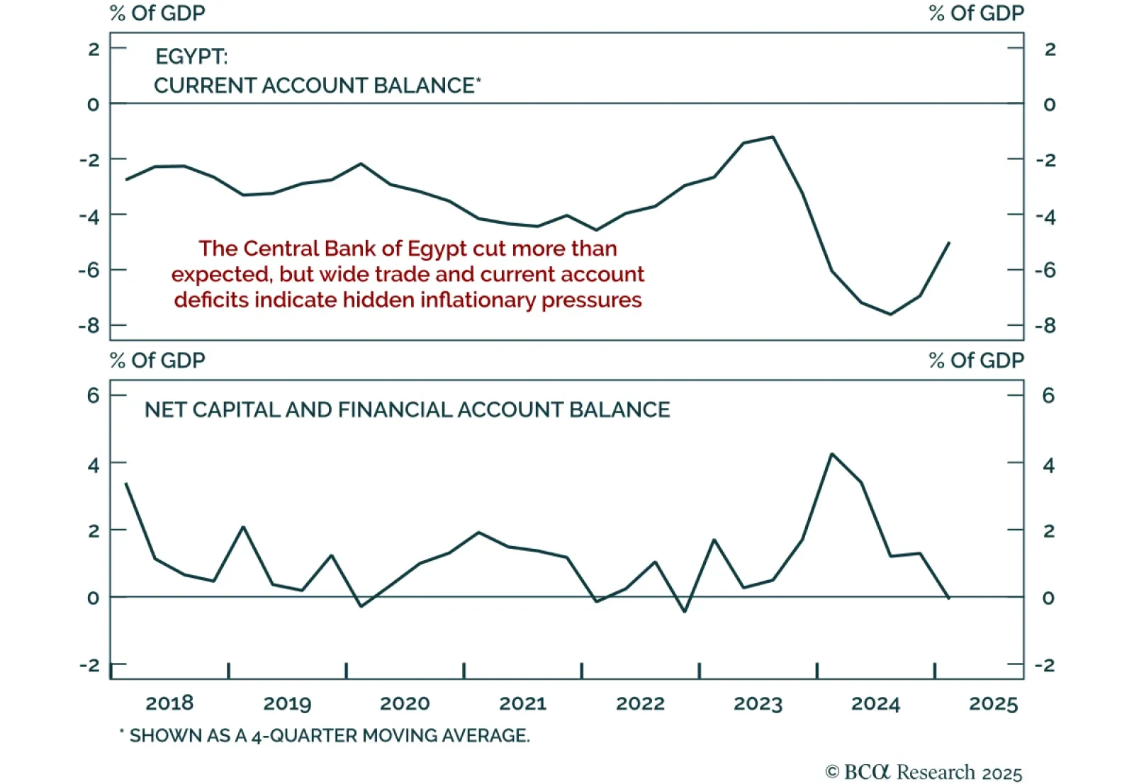 Egypt’s surprise 200 bps rate cut raises risks of re-accelerating inflation and currency pressure. The Central Bank of Egypt lowered the overnight lending rate to 23%, a larger-than-expected move. Our Emerging Markets strategists…