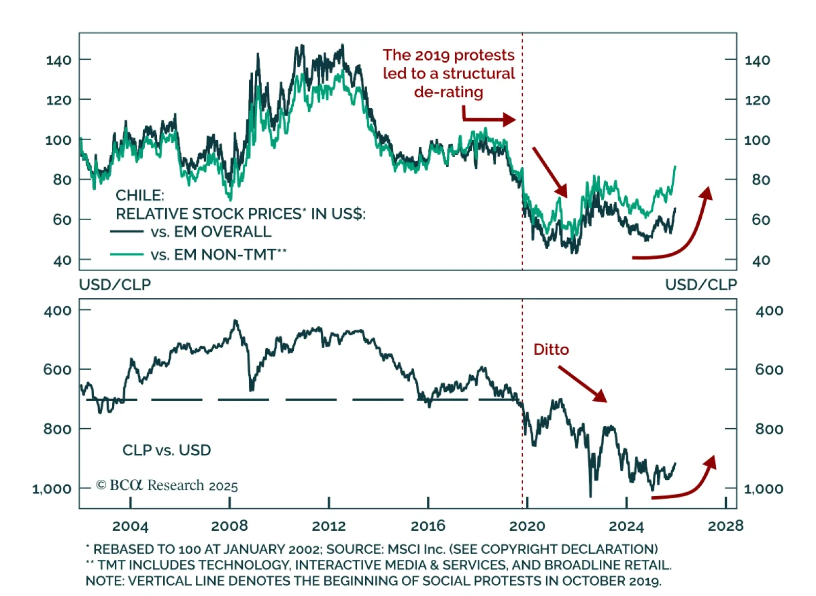 Chilean equities are undergoing a structural re-rating. A political swing back to a pro-business administration, a benign macro backdrop, and a resilient exchange rate will drive Chilean markets’ outperformance versus EM peers.…