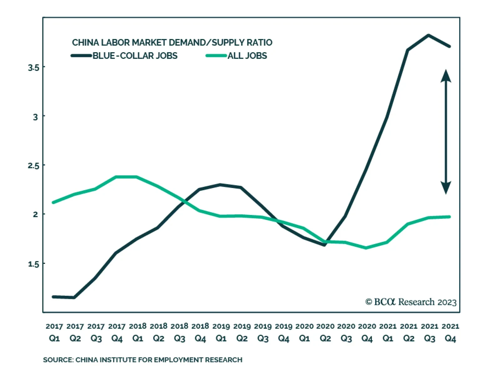 BCA Research’s China Investment Strategy service concludes that given the structural scarcity of blue-collar workers, the authorities will be less inclined to resort to their old playbook of stimulating infrastructure,…