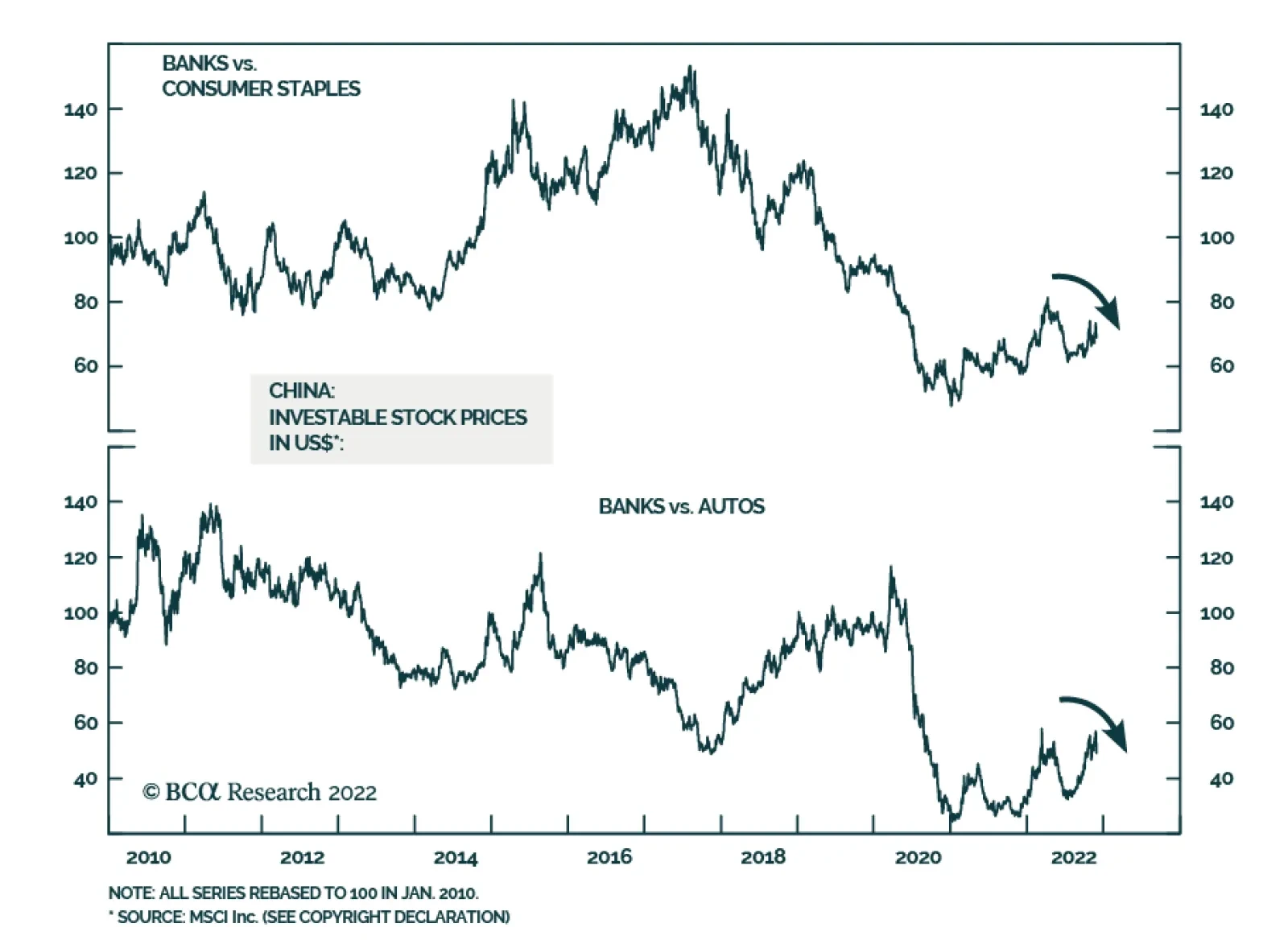BCA Research’s China Investment Strategy service recommends a new relative equity trade: short Chinese bank stocks / long Chinese consumer staples and auto stocks. Authorities are once again using banks to finance…