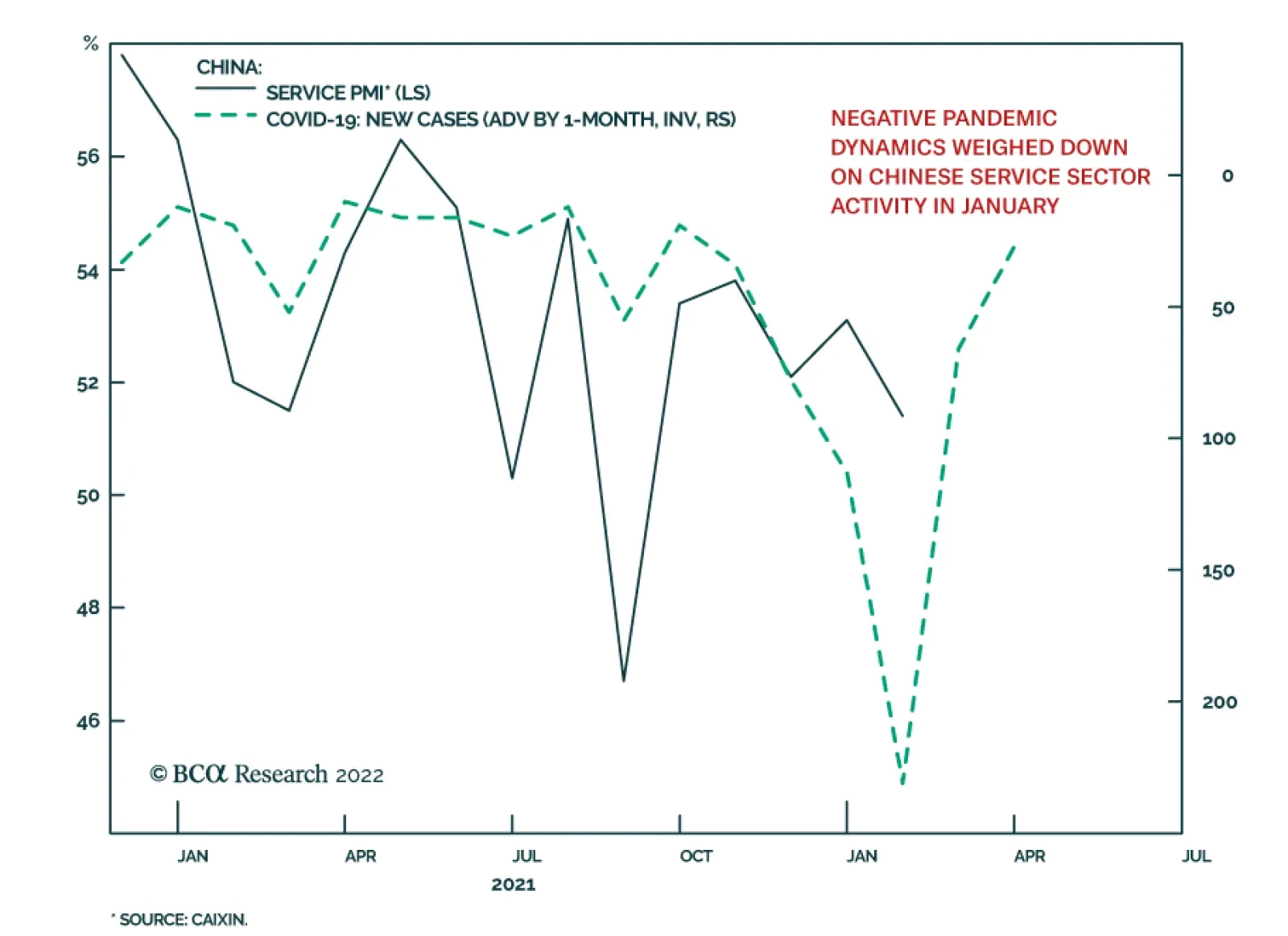 The Caixin PMI suggests that Chinese economic activity stagnated in January. The Composite PMI declined by 2.9 points to 50.1 – a hair above the boom-bust line separating contraction from expansion. The services PMI…