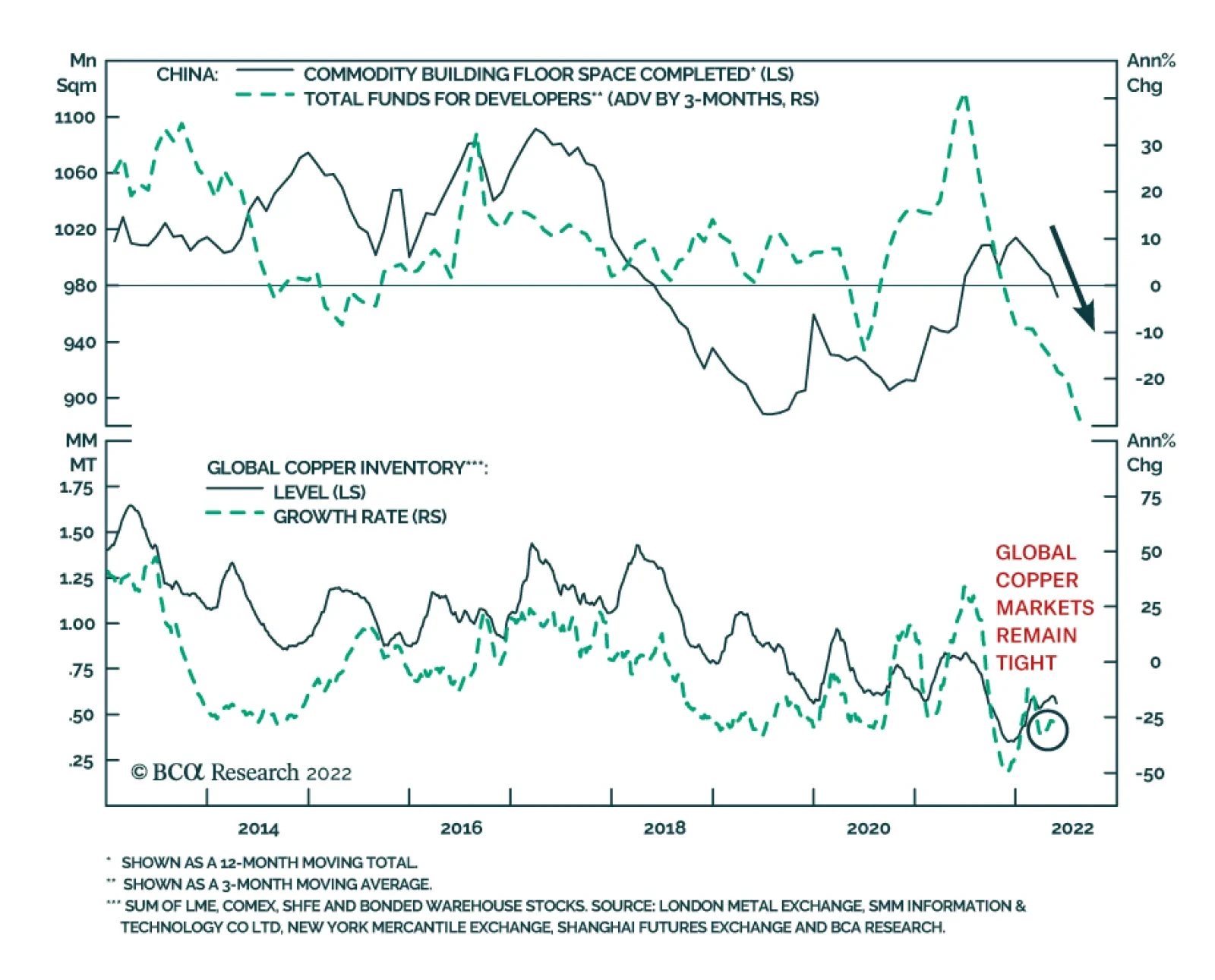 These plans, however, are not aligned with the nation’s pathway to go carbon neutral by 2045. An environmental activist group has filed a lawsuit to halt the construction of the LNG terminal. The group also is opposed to Germany’s draft LNG acceleration bill, which will allow imports until two years before 2045.6 This reflects two problems all EU nations will face as they transition to LNG from pipeline Russian gas imports. Firstly, member states will need to invest billions of euros in new LNG capacity, and given current politics, likely will have to decide to scrap or repurpose this infrastructure in during the transition to green energy. Opposing this possibility is the high likelihood that EU states will need to enter long-term LNG contracts to ensure supply security and shield themselves from volatile natgas prices. For the immediate future, the EU likely will kick this can down the road for as long as possible. Investment Implications Back in March, Germany and Austria began preparing their citizens for natgas rationing.7 Now the IEA is warning all of Europe the likelihood of such action is increasing rapidly.8 State and local planners throughout Europe will spend the next five months or so lining up as much LNG and pipeline gas as possible going into the coming winter season. While the inventory-injection in Europe is off to a good start, planners most likely hope to exceed their minimum target for filling 80% of storage in time for the November-March withdrawal season. In addition to the risk of a Russian cutoff of supplies, planners have to account for a higher likelihood of a colder-than-normal winter, given the odds of another La Niña winter, which is associated with colder-than-normal winters in the Northern Hemisphere. The US Climate Prediction Center makes the odds of such an event – the third such event in as many years – just over 60%. If European states are forced to implement rationing of natgas, knock-on effects resulting from prioritizing human needs over industrial concerns will, once again, restrict base metals, fertilizer and food supplies. We remain long energy, metals and grains exposure via the S&P GSCI and COMT ETF as the natural-gas drama in Europe plays out. In addition, we remain long the XOP, XME, PICK, and CRAK ETFs to maintain our equity exposure to industrial commodities. At tonight’s close, we will be getting tactically long 1Q22 futures on the ICE, expecting prices to again exceed €225/MWh. This will complement our existing tactical commodity exposures in 4Q22 TTF futures. Robert P. Ryan Chief Commodity & Energy Strategist rryan@bcaresearch.com Ashwin Shyam Research Analyst Commodity & Energy Strategy ashwin.shyam@bcaresearch.com Paula Struk Research Associate Commodity & Energy Strategy paula.struk@bcaresearch.com Commodities Round-Up Energy: Bullish US refined product demand rose just under 4% for the week ended 3 June 2022, led by a surge in jet-fuel demand of 26.5% yoy – finishing at 1.6mm b/d vs. 1.26mm b/d the year earlier, according to the US EIA. This provides further evidence consumer pent-up demand for travel is being released, after the long shut-downs in travel caused by COVID-19 beginning in 1Q20. The surge in jet-fuel demand was enough to offset yoy declines in gasoline and distillates such as diesel fuel and heating oil of 0.9% and 2.8%, respectively. Gasoline inventories were down 800k barrels yoy, which put them 10% below their five-year average level at the end of the reporting week. Distillate inventories rose 2.6mm barrels, but this still left them 23% below their five-year average. Crude oil inventories in the US including those in the Strategic Petroleum Reserve (SPR), which is being drawn down to provide charging stock to refiners, drew 7.3mm barrels, and stood at 519mm barrels. Versus year-ago levels, crude inventories including the SPR are down 17%. Base Metals: Bullish Copper production in Chile fell 9.8% yoy in April as state-owned copper giant Codelco’s monthly supply fell 6.1% yoy to 116,000 tons. In Peru, protests against mines by displaced communities have seen suspensions in copper mine production, including that of MMG-owned Las Bambas. Although the International Copper Study Group (ICSG) expects a physical surplus for refined copper markets next year, falling production in Chile and civil unrest in Peru continue to plague the rebuilding of stocks (Chart 11). Globally, a risk matrix we reproduced in a report last year showed that approximately 570 million Metric Tons of copper faced a significant ESG risk.9 This increases the risk of new copper projects being stymied by activist groups, and further curtailing future copper production. Precious Metals: Bullish According to data from World Gold Council, gold ETFs faced net outflows in May as the USD and interest rates strengthened, following the Fed rate hikes (Chart 12). In his speech, Fed Governor Christopher Waller explained that by increasing interest rates, the Fed aims to match labor demand to supply and reduce wage growth, which in turn will lower inflation.10 This, however, does not deal with high inflation via the mechanism of elevated food and fuel prices, which will remain high as long as supply disruptions continue in these markets. Chart 11