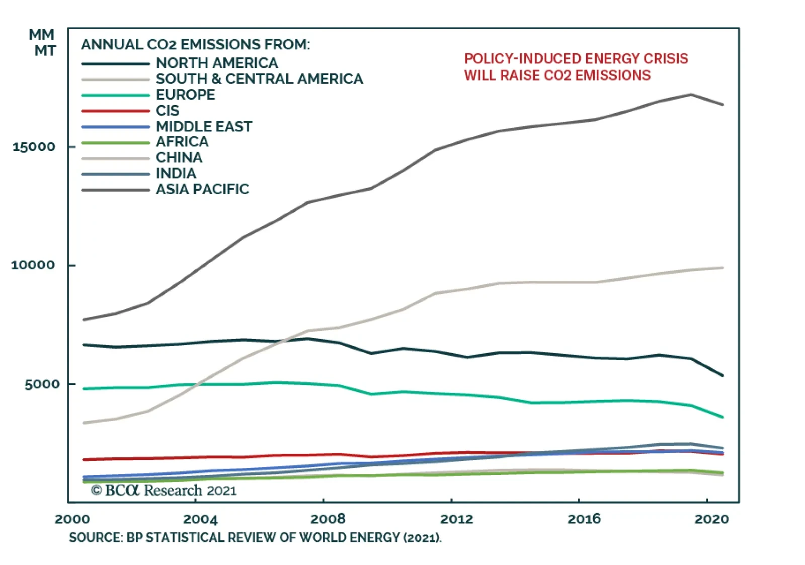 Highlights The 26th Conference of the Parties (COP26) will open this weekend in Glasgow, Scotland, amid a global crisis induced in no small measure by policies and regulations that led to energy-market failures. Price-distorting regulations and ad hoc fixes – e.g., retail price caps, "windfall profits" taxes – will compound the current crisis. Mad rushes to cover energy and space-heating demand in spot coal and gas markets when renewable-energy output falters will be repeated, given utility-scale battery storage will continue to be insufficient to replace hydrocarbons in the transition to a low-carbon economy. On the back of higher coal, gas and oil demand, CO2 emissions will return to trend growth or higher this year (Chart of the Week). Base metals capex will have to increase at the mining and refining levels to meet renewables and EV demand. This includes the need to diversify metals' production and refining concentration risks more broadly.1 We remain strategically long the COMT ETF and the S&P GSCI index, as these fundamental imbalances are addressed. We also are initiating a resting buy order on the XME ETF if this basic materials ETF trades down to $40/share. Feature Going into the COP26 meetings starting this weekend, delegates no doubt will be preoccupied with the global energy crisis engulfing markets as the Northern Hemisphere winter approaches. In no small measure, the crisis is a product of poor policy design and regulatory measures meant to accelerate the transition to low-carbon economies globally. This is most apparent in China, the UK and the EU. China and the UK use retail price-caps to control the cost of energy to households. In China, the price caps recently brought state-owned electricity providers to the brink of bankruptcy, because suppliers were not able to pass through higher wholesale prices for coal and natural gas to retail consumers. In the UK, retail price caps actually did result in bankruptcies of smaller electricity providers. In the EU, price caps and "windfall profits" taxes are being imposed on retail energy providers in different states in the wake of the energy crisis.2