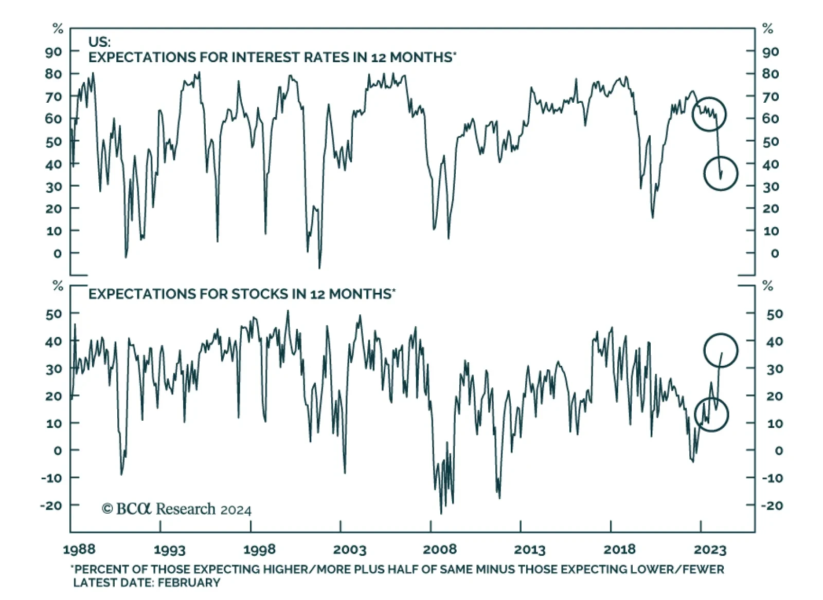 Economic sentiment has improved since the December FOMC meeting, with positive momentum extending into February. The chart above neatly summarizes the impact that the Fed’s projected easing has had on sentiment, both on…