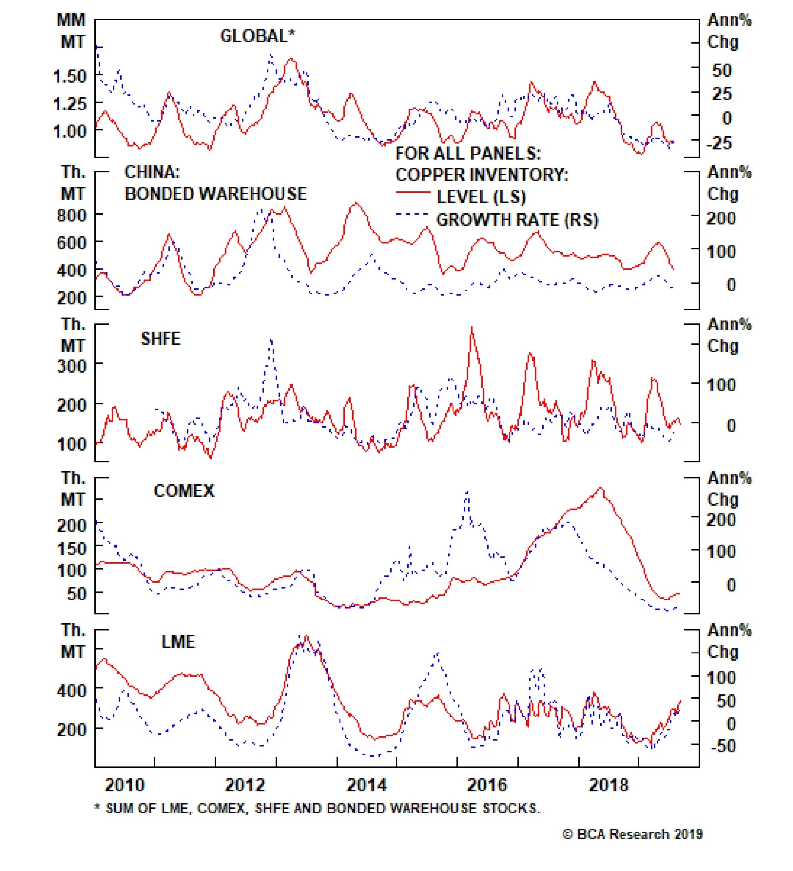 We continue to expect copper prices to increase in the near term, as China’s credit cycle bottoms and DM central banks soften their monetary-policy stance. Fiscal and monetary stimulus in China also will be supportive of base metals…