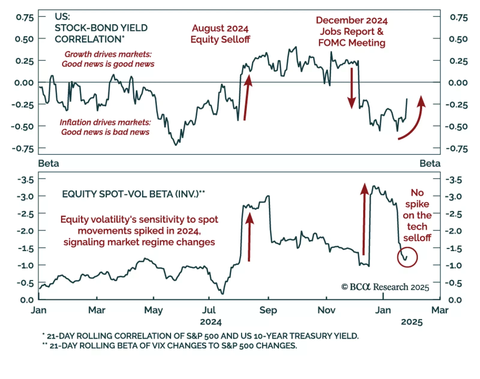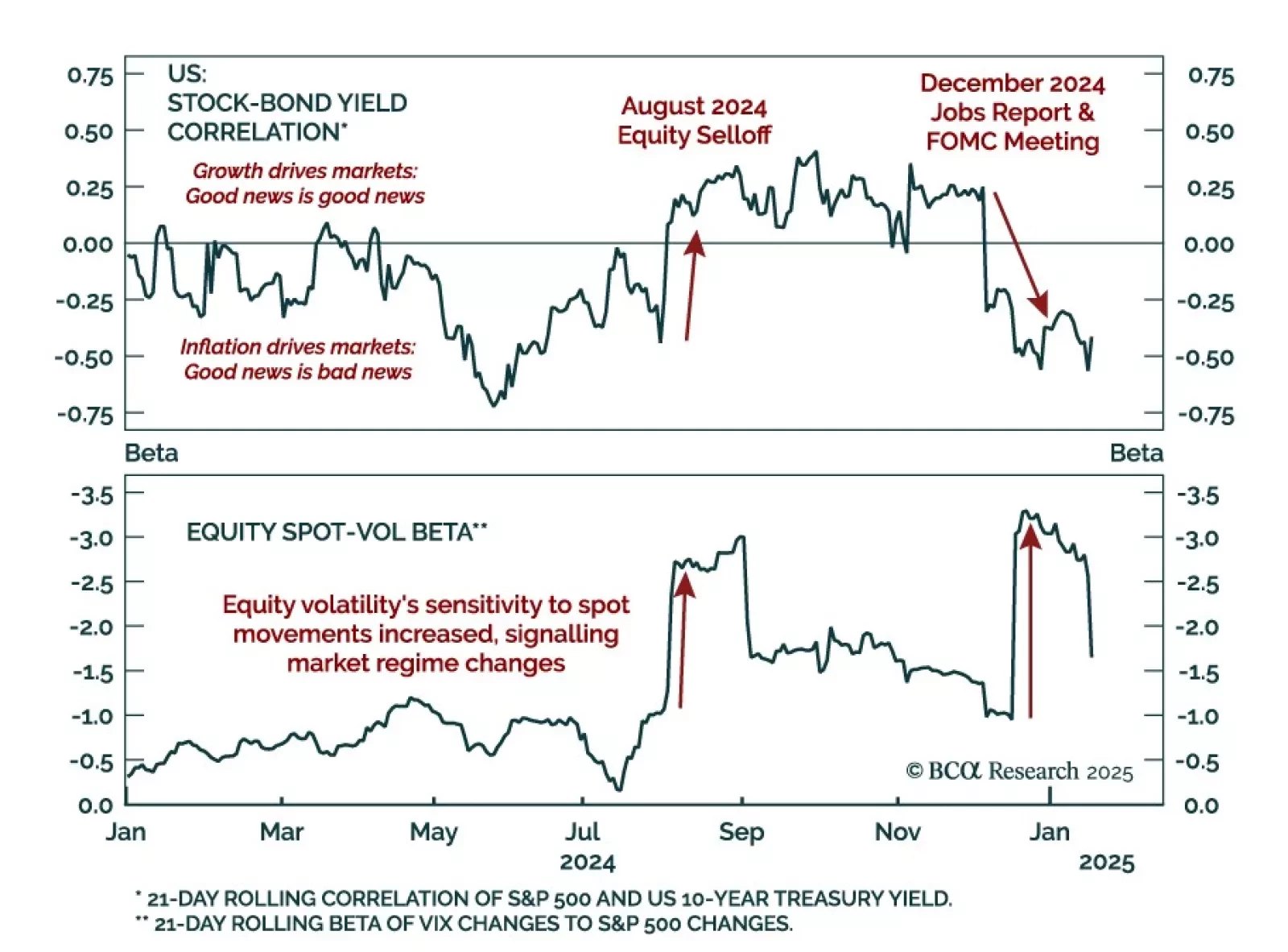 Two main market events defined 2024, highlighting how assets will react to economic data on the tactical horizon. The August 2024 selloff marked a positive shift in the stock-bond yield correlation, as higher odds of a “hard landing…