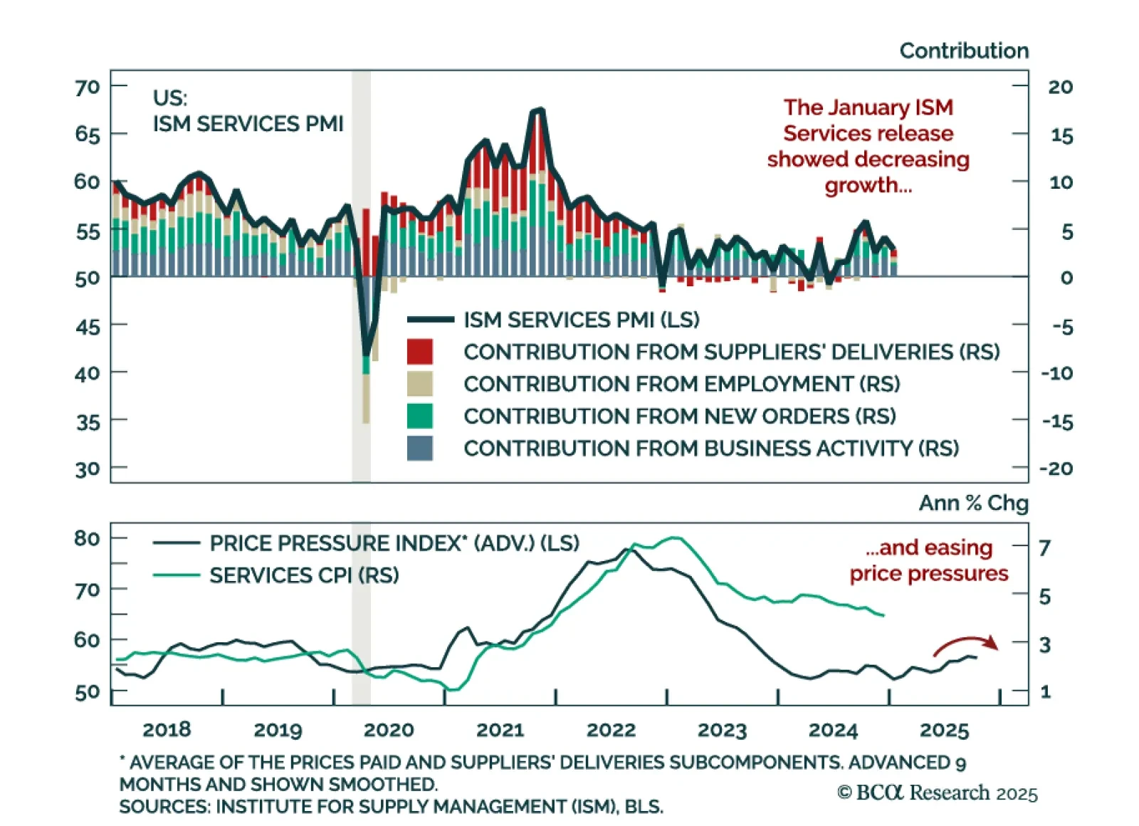 The January ISM Services missed estimates, decreasing to 52.8 from 54.0 in December. The move was driven by activity components, while employment and suppliers’ delivery times increased. Additionally, the prices paid measure…