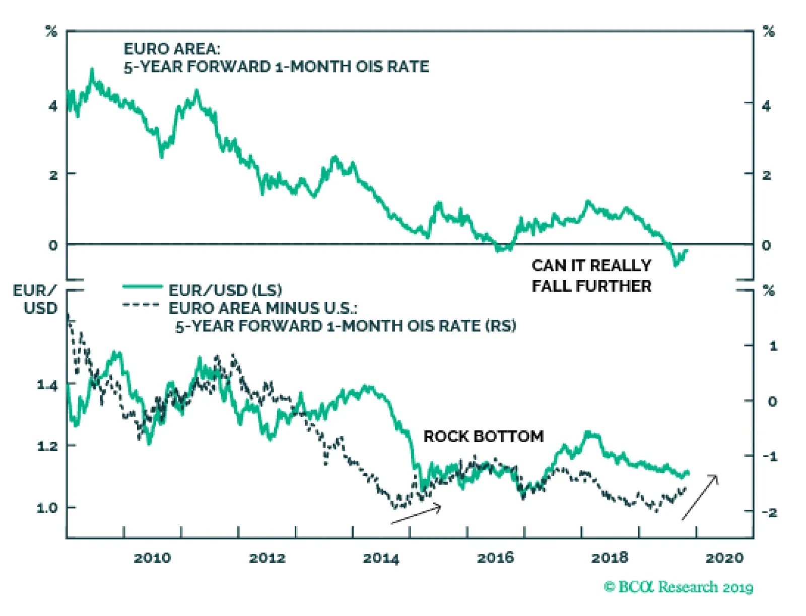 Currencies: The first inklings of U.S. dollar weakness over the past month suggest that it may, too, be sniffing out the start of a cyclical rebound, since it tends to be a very counter-cyclical currency (Chart 15). Going forward, relative interest rates are also unlikely to be as bullish a force for the U.S. dollar as they have been in the past few years. For now, we are neutral on the U.S. dollar on a trade-weighted basis, but do see it depreciating against the Australian dollar and the euro over the next 12 months. The British pound has already risen to take into account the lesser probability of a no-deal Brexit, and we would not expect it to move much either way until the General Election result is clear. There are some risks to the optimistic scenario: Chinese growth remains sluggish, and there are signs that U.S. companies are delaying hiring decisions. Chart 14First Signs Of Euro Banks Recovering?