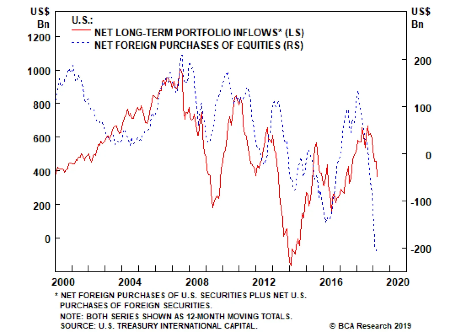The greenback will likely appreciate, perhaps significantly so, once the Fed picks up the pace of rate hikes in late 2020. The accompanying tightening in global financial conditions is likely to sow the seeds for a worldwide downturn in 2021. The combination of faster global growth and a weaker dollar will support global equities over the next 12 months. European and EM bourses will benefit the most. Investors should begin derisking in the second half of next year. Peter Berezin, Chief Global Strategist Global Investment Strategy peterb@bcaresearch.com Footnotes 1 Patricia Zengerle, “U.S. Lawmakers Seek To Block Trump On Tariffs,” Reuters, June 5, 2019. 2 Please see Geopolitical Strategy Weekly Report, “Is Trump Ready For The New Long March?” dated May 24, 2019. 3 Final sales to domestic purchasers is equal to gross domestic product (GDP) excluding net exports of goods and services, less the change in private inventories. 4 Jim Dolmas and Evan F. Koenig, “Two Measures Of Core Inflation: A Comparison,” Federal Reserve Bank Of Dallas, Working Paper 1903, February 25, 2019. 5 Depending on which specification of the Taylor Rule one uses, a one percent of GDP increase in aggregate demand will increase the neutral rate of interest by half a point (John Taylor’s original specification) or by a full point (Janet Yellen’s preferred specification). John B. Taylor's 1993 specification is based on the following equation: rt = 2 + pt + 0.5(pt - 2) + 0.5yt. Janet Yellen's preferred specification is based on the following equation: rt = 2 + pt+ 0.5(pt - 2) + 1.0yt. Please note: For both specifications above, rt is the federal funds rate; pt is core PCE expressed as a year-over-year percent change; and yt is the output gap (as approximated using the unemployment gap and Okun's law). For further discussion, please see Janet L. Yellen, "The Economic Outlook And Monetary Policy," April 11, 2012. 6 Recall that GDP is a flow variable (how much production takes place every period), whereas credit is a stock variable (how much debt there is outstanding). By definition, a flow is a change in a stock. Thus, credit growth affects GDP and the change in credit growth affects GDP growth. 7 Ratio (multiplied by 100) of the price index for exports of goods and services to the price index for imports of goods and services. 8 The higher the depreciation rate, the more investment is necessary to maintain the existing capital stock. More investment demand for any given level of savings implies a higher interest rate. One can see this in the Solow growth model, which posits that the neutral rate of interest (r*) should be equal to: