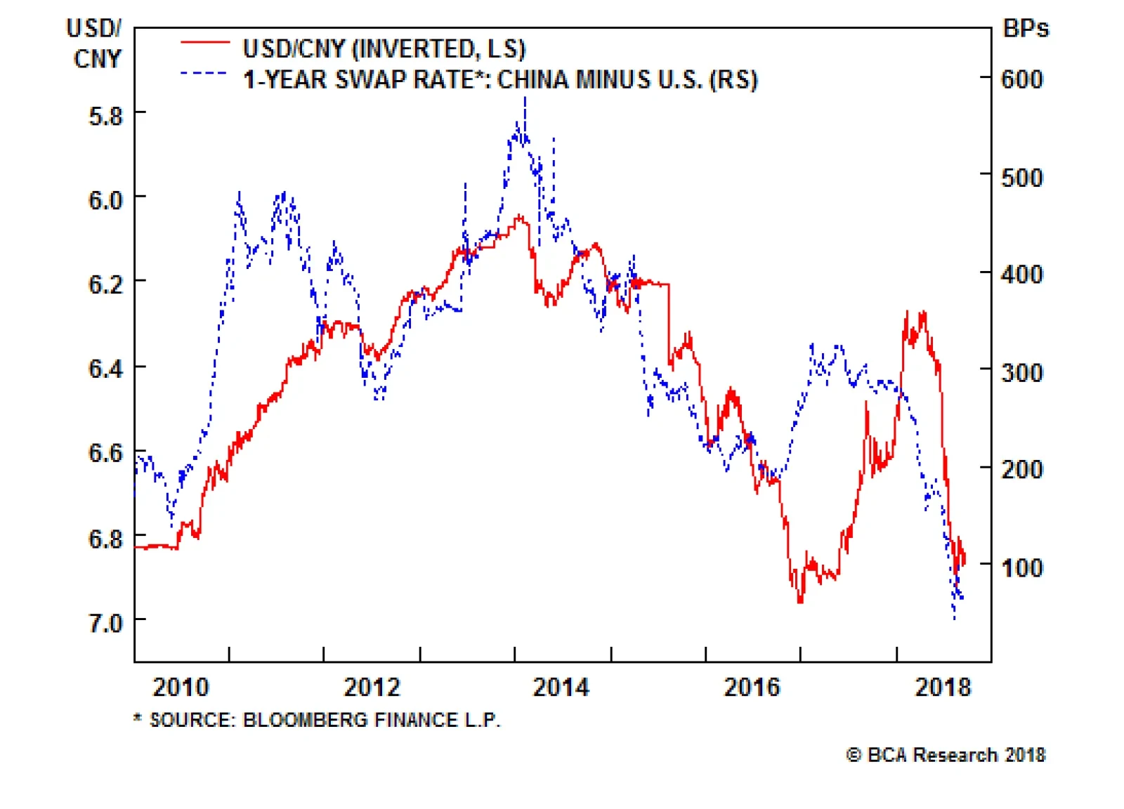 USD/CNY Has Tracked China-U.S. Interest Rate Differentials