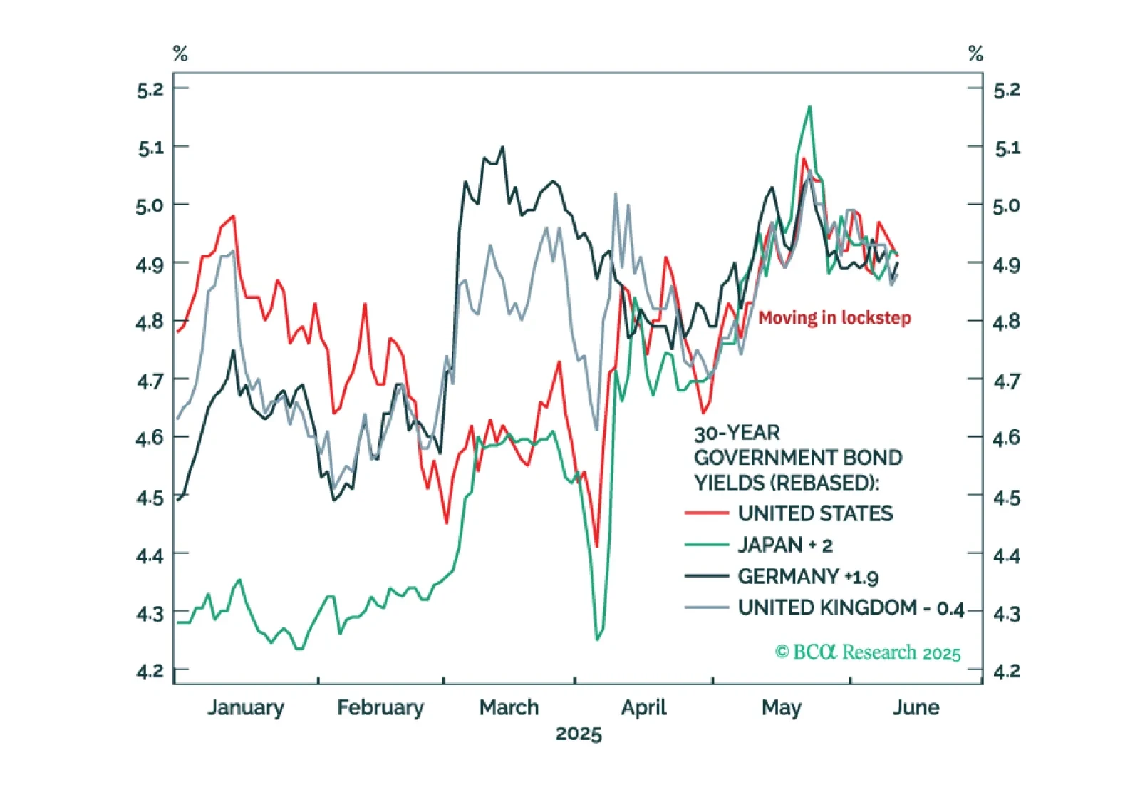 The perfectly synchronised moves in US, Japanese, German, and UK 30-year bond yields through the past two months are odd… and irrational. These irrational moves present compelling investment opportunities.