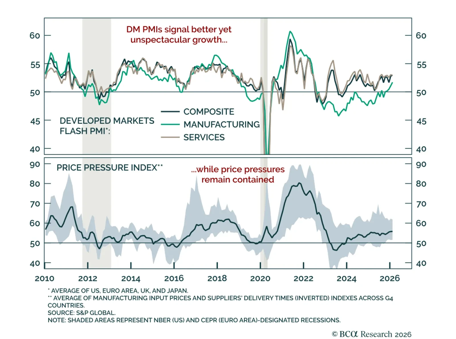 February flash PMIs edged higher, pointing to gradual improvement in global growth. After moving mostly sideways through 2025, developed markets PMIs are picking up. Manufacturing is showing decent momentum, rebounding after being…