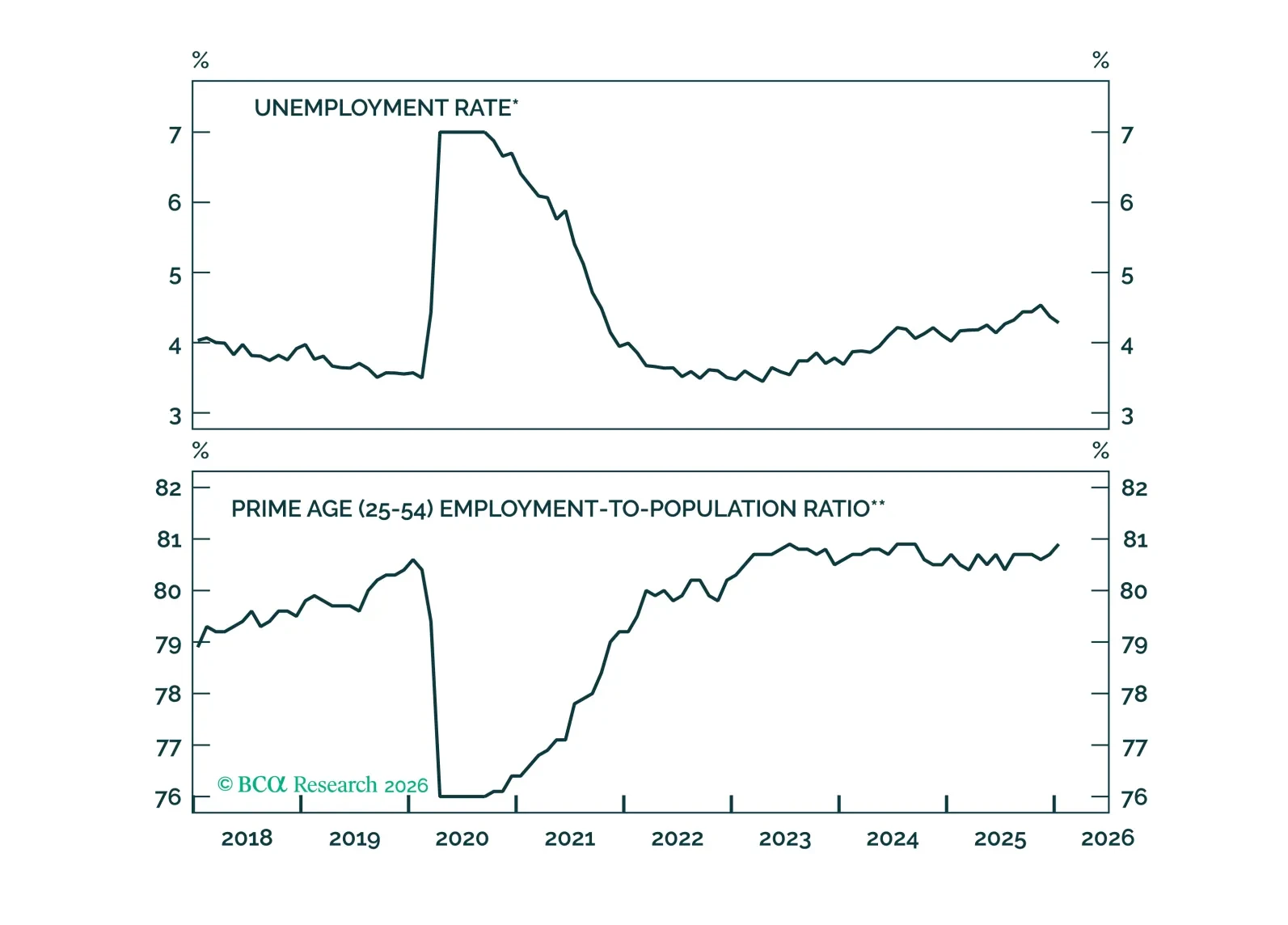 The labor market tightened in January, significantly lowering the odds of a H1 2026 rate cut. Rate cuts driven by lower inflation are still likely in H2 2026.