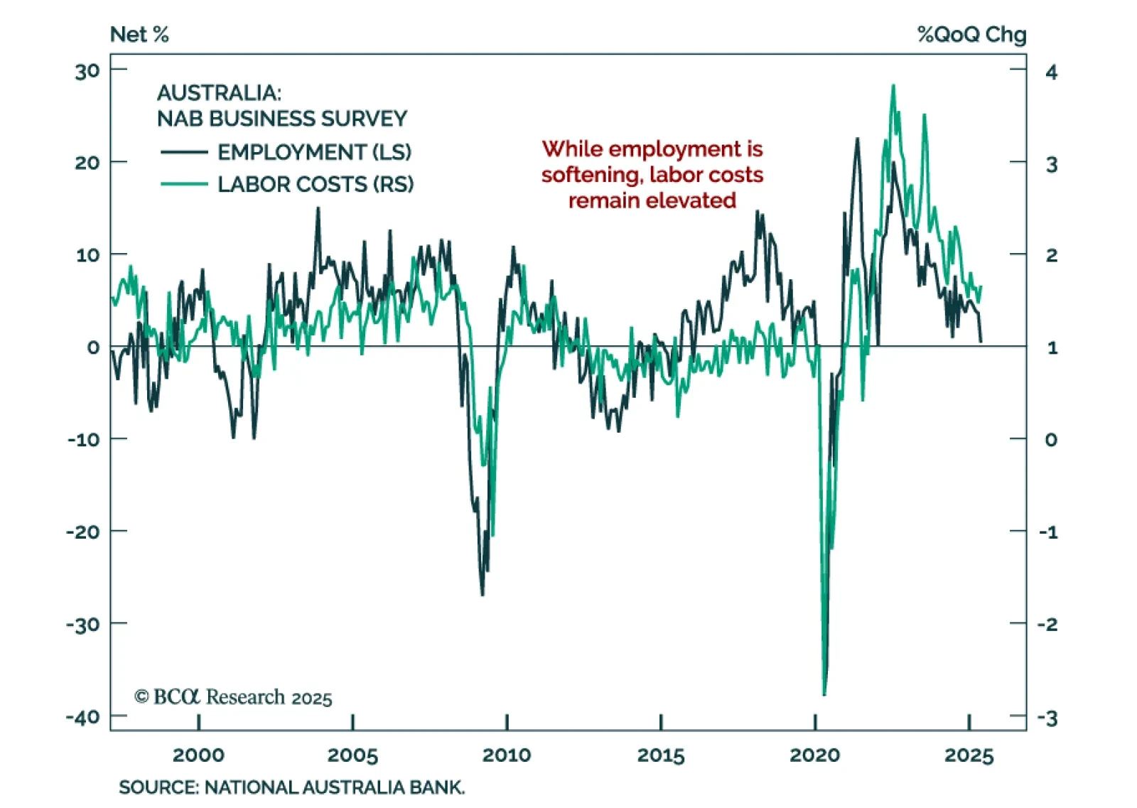 Mixed signals from the NAB Business Survey reinforce our underweight in Australian government bonds and long AUD exposure. In May, business confidence rebounded slightly, rising to 2 from -1, but current conditions dipped to 0 from 2…