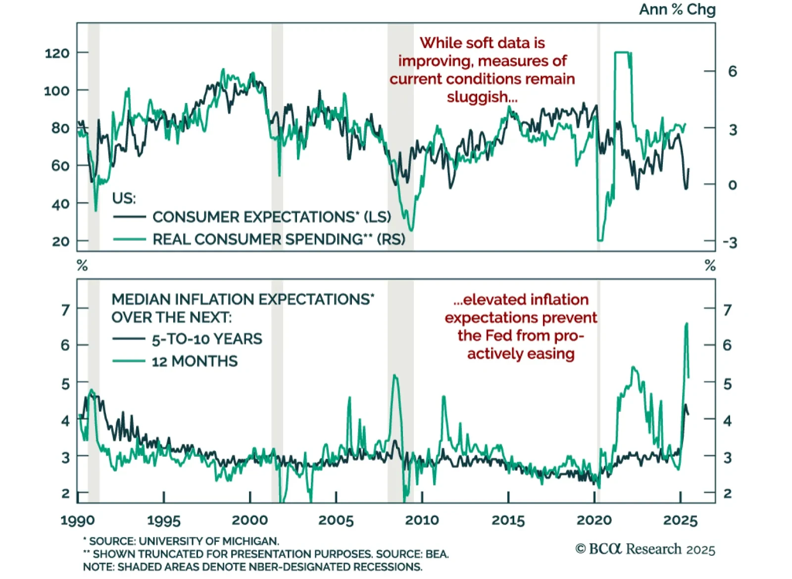 While consumer sentiment is rebounding, sticky inflation expectations and slowing growth warrant staying long duration and steepeners. The preliminary June University of Michigan Consumer Sentiment Index surprised to the upside,…
