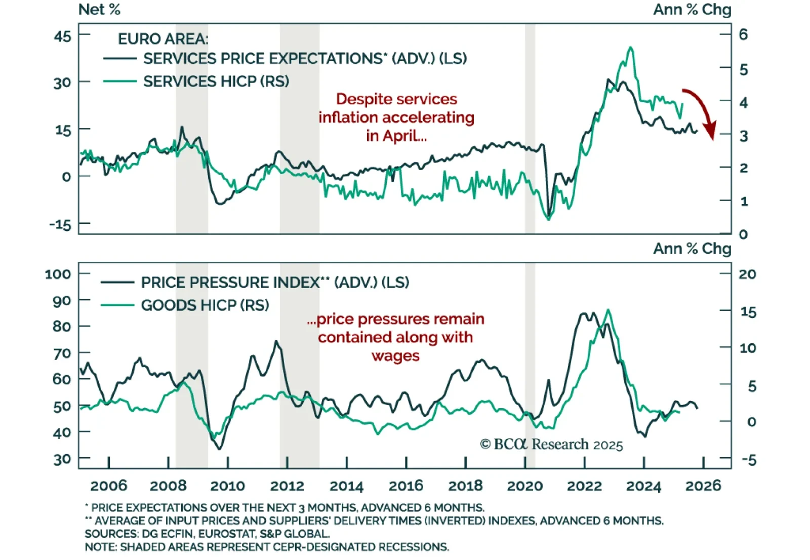 April’s Eurozone inflation data supports BCA’s bullish Bund stance and cautious view on EUR/USD. Headline HICP inflation held steady at 2.2% y/y while core ticked up to 2.7% from 2.4%. Services inflation rebounded to 3.9%,…