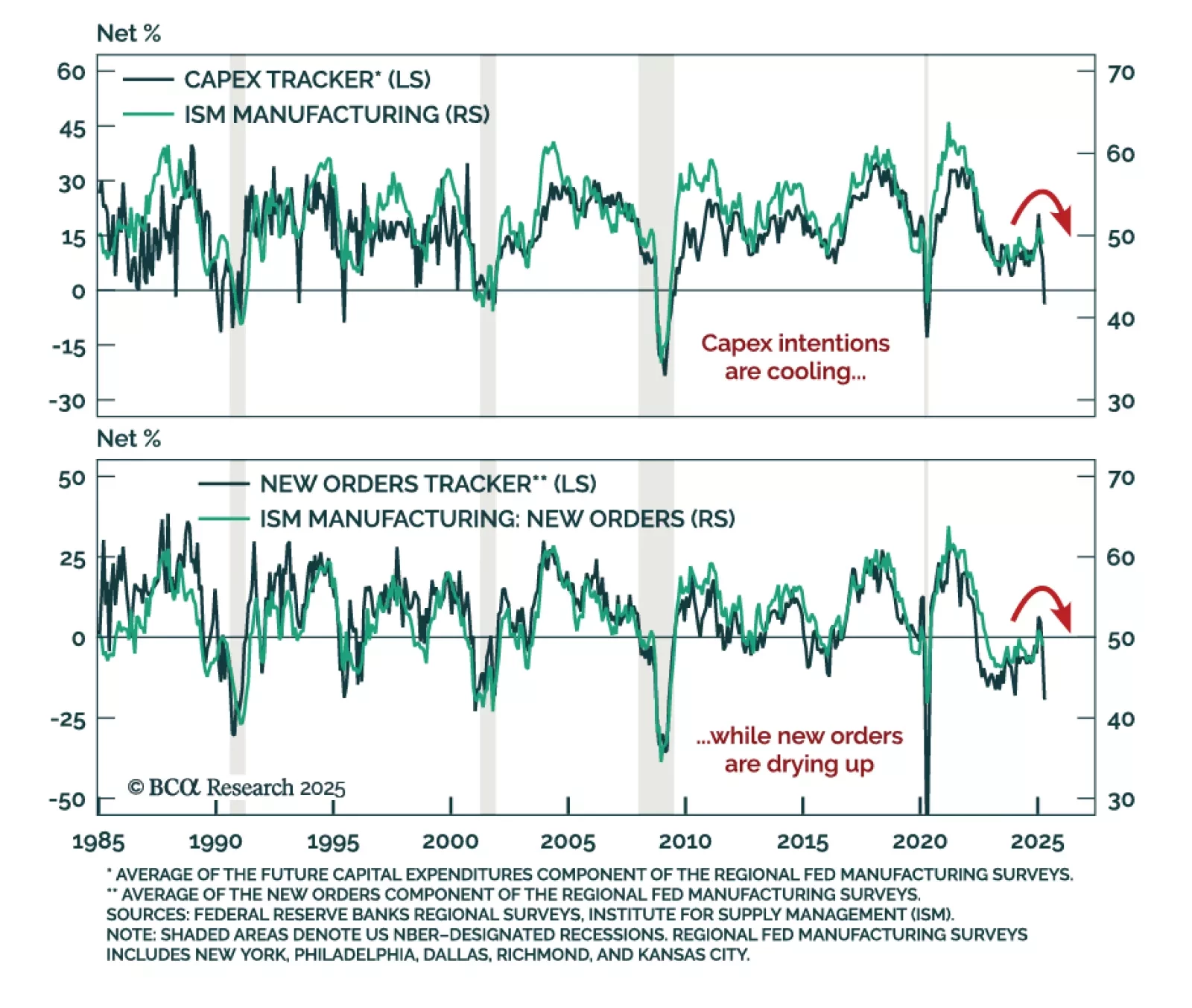 Advanced US indicators for April continue to deteriorate, reinforcing our defensive positioning as recession risks remain underpriced. After weak Empire and Philly Fed manufacturing prints, the Philly Fed services survey shows the…