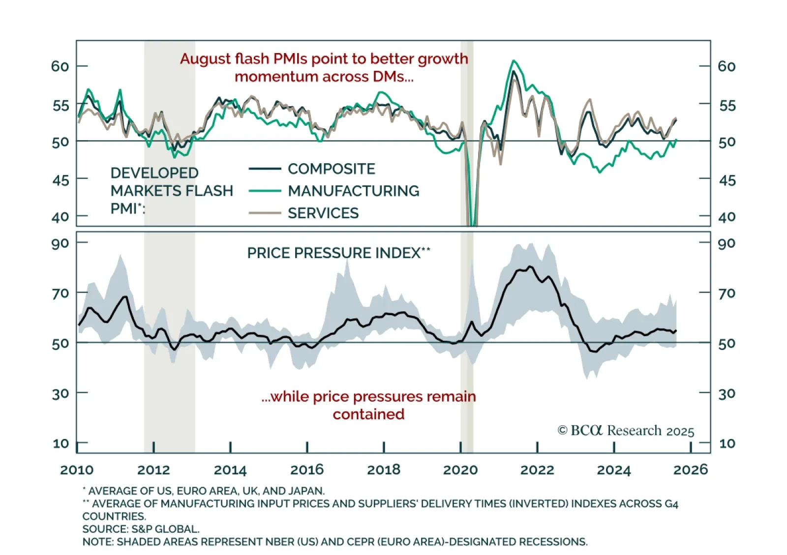 Flash August PMIs show tentative global momentum yet growth remains weak. The composite PMI improved in both the US (55.4 vs. 55.1) and euro area (51.1 vs. 50.9), with manufacturing moving into expansion for the first time in 18…