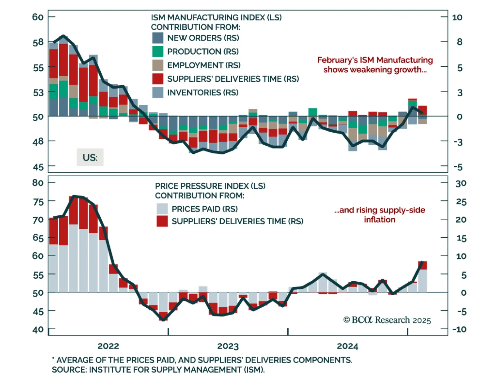 Leading US growth indicators have slowed, with economic surprises now in negative territory. However, Monday’s ISM Manufacturing showed that while activity is slowing due to tariffs uncertainty, supply-side price pressures are…