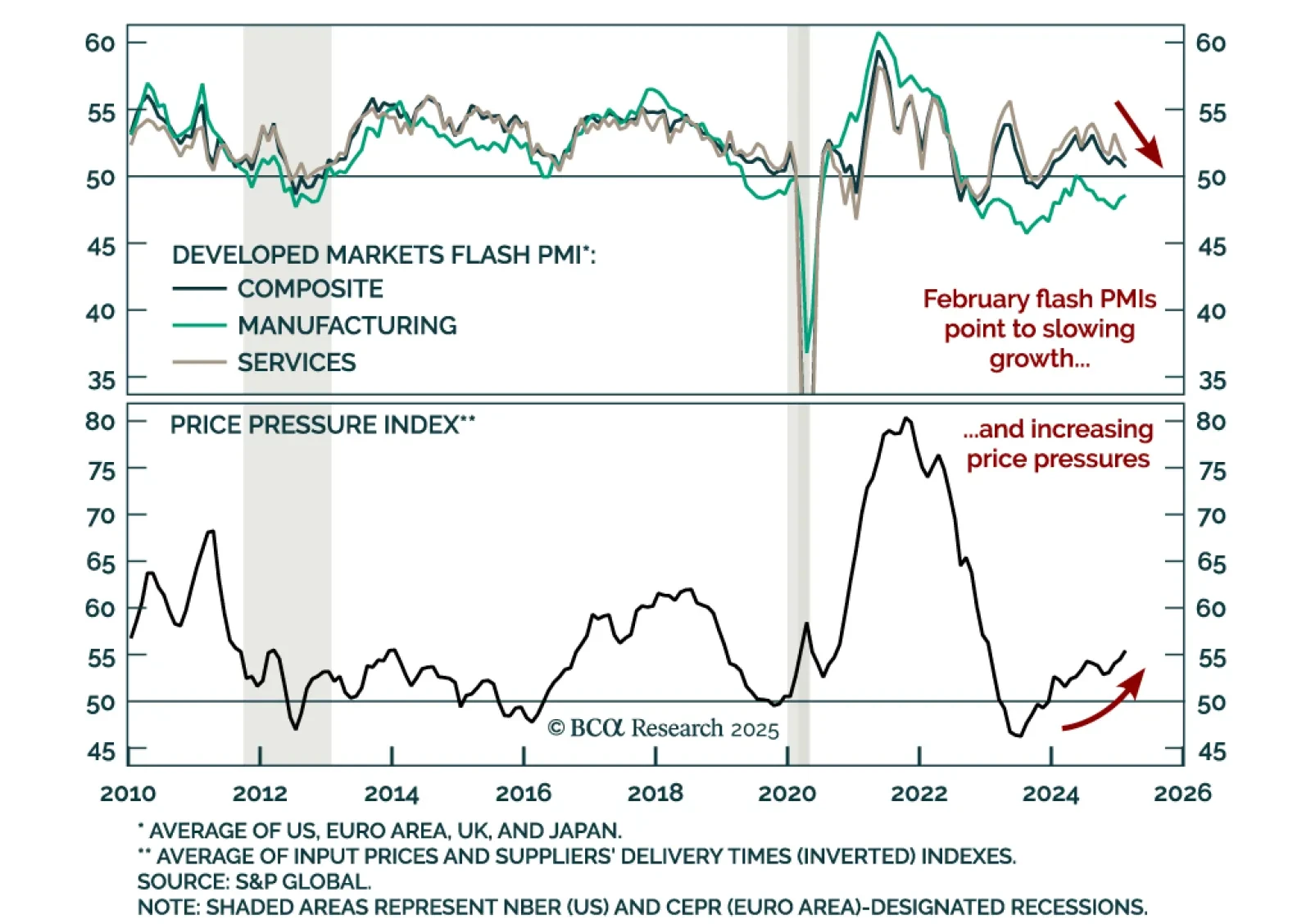February’s flash PMIs for the major developed markets showed softening growth, and rising price pressures. The US composite index missed estimates and decreased to 50.4 from 52.7 in January. Services were a big contributor to the…