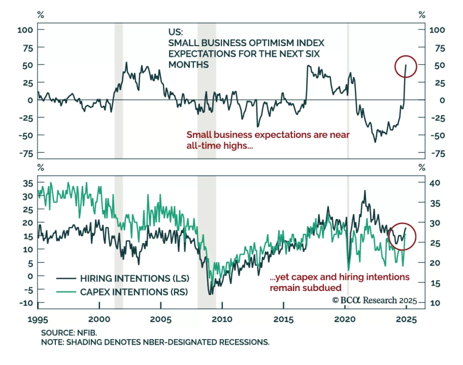 The December NFIB Small Business Optimism Index beat expectations, jumping to 105.1 from 101.7 in November. Most index subcomponents increased, led by measure of expectations, notably for the state of the economy and real sales.…