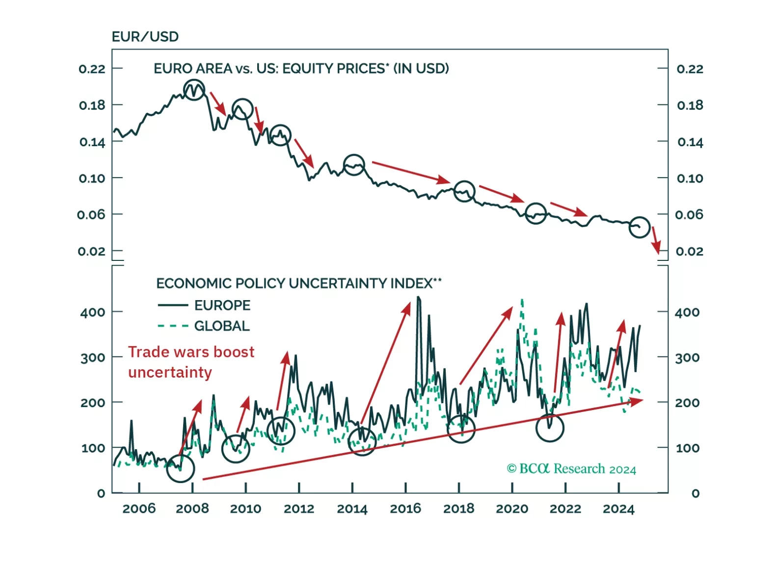 President-elect Trump jolted markets Monday night by declaring that tariffs will be implemented on imports from Mexico, Canada, and China. The US dollar strengthened while stocks fell, as did Treasury yields. Equities, however,…